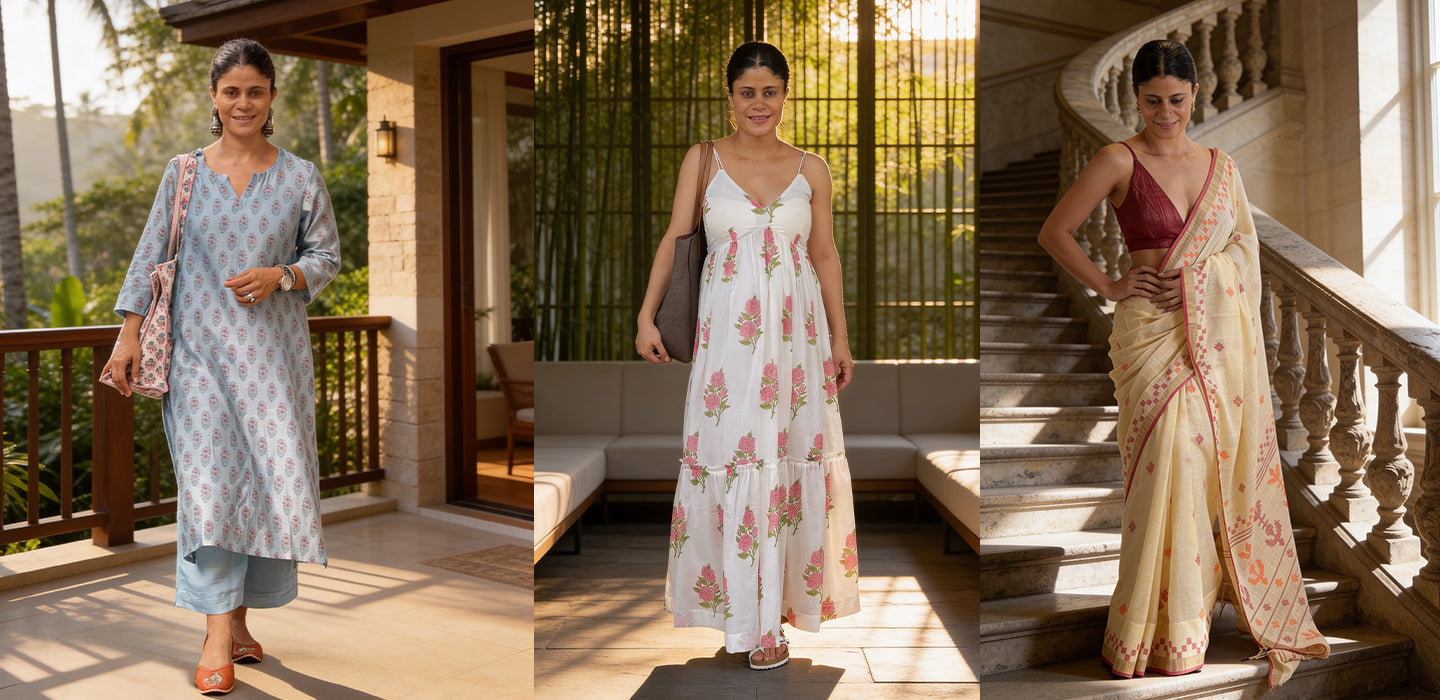 Rooted in calm silhouettes and breathable fabrics, our designs are made to accompany unhurried days, meaningful moments, and effortless elegance.