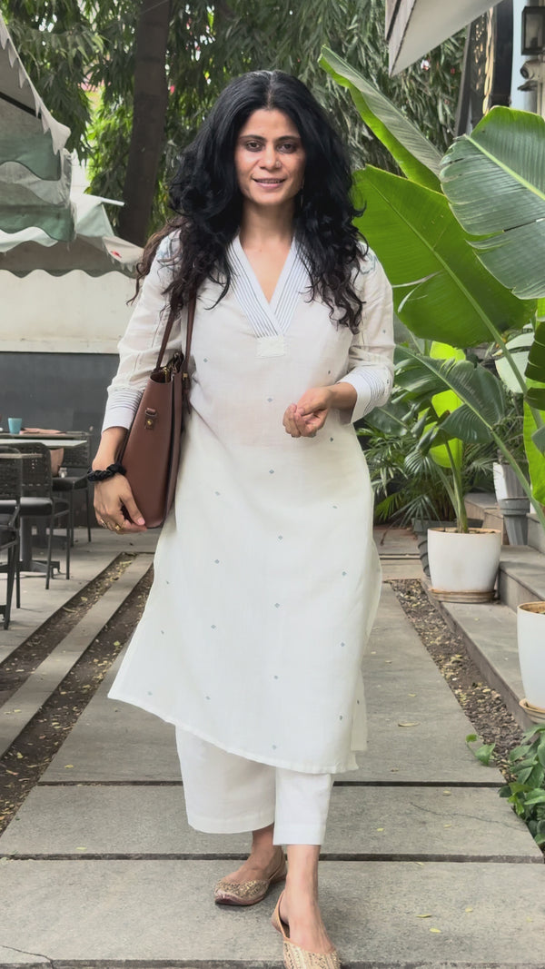 Handspun Handwoven Jamdani Kurta With Hand...