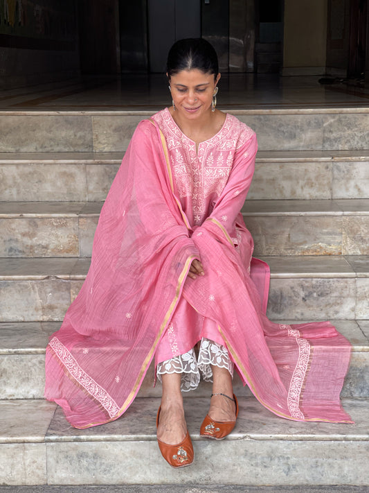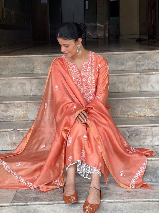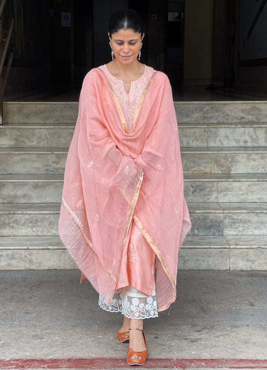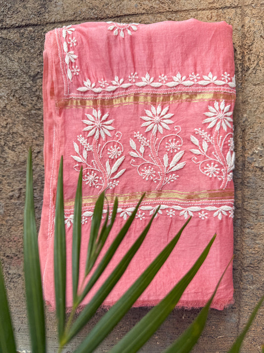 Chanderi Silk Handembroidered Chikankari Dupatta