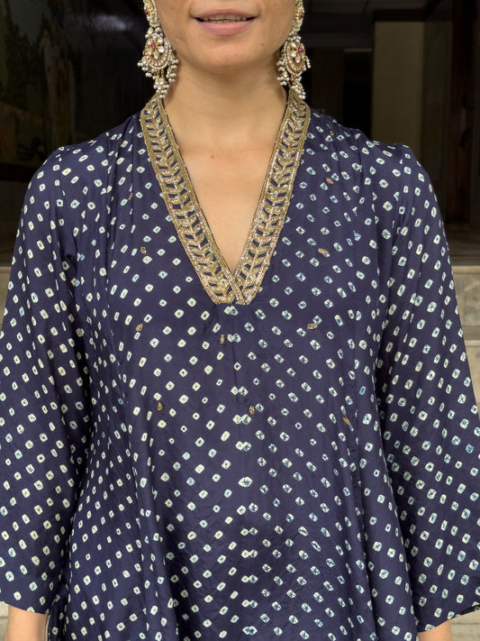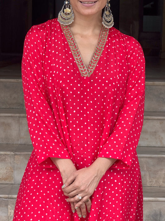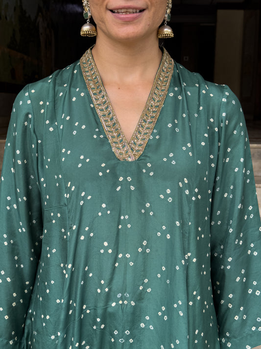 Handmade & Handembroidered Bandhini Silk Kurta set