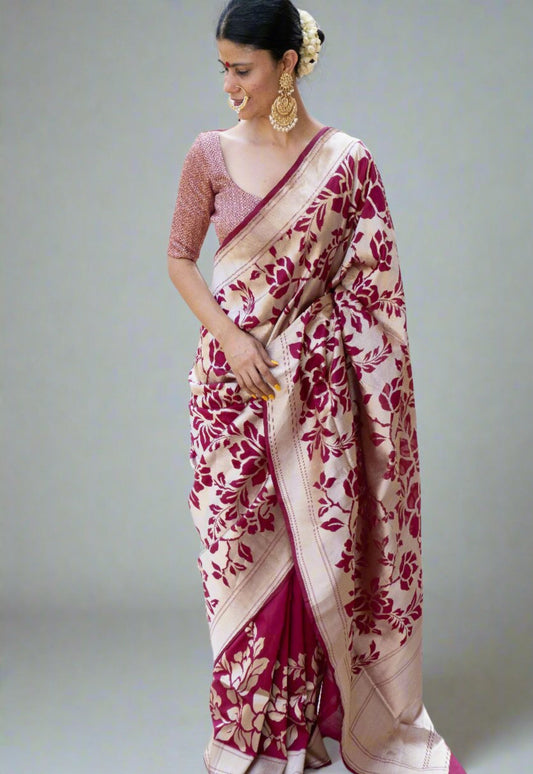 Magenta Colour Handwoven Kadwa Meenakari Katan Silk Banarasi Saree