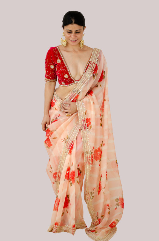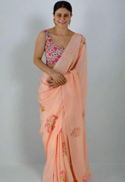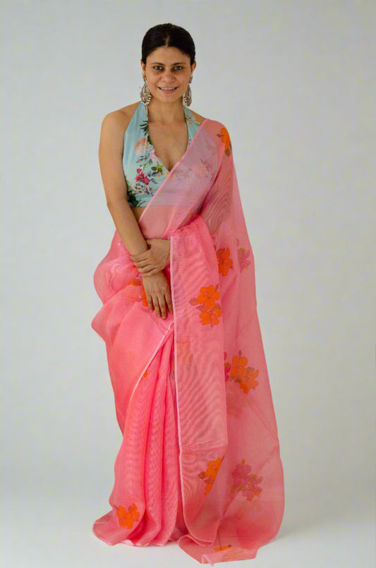 Hand Embroidered Mukaish Work Organza Silk Saree
