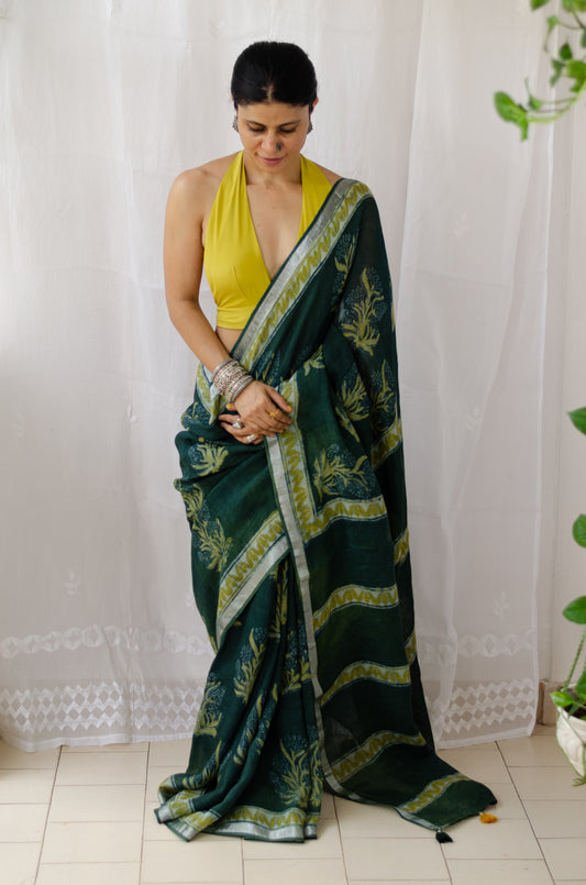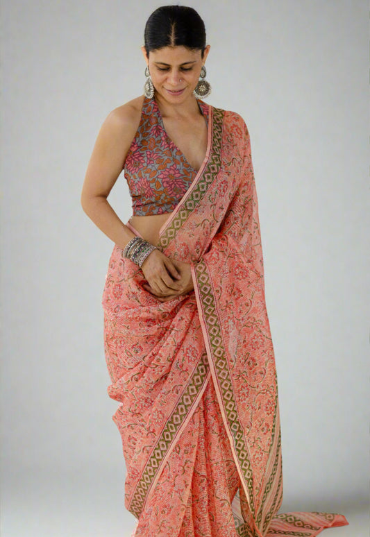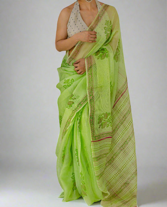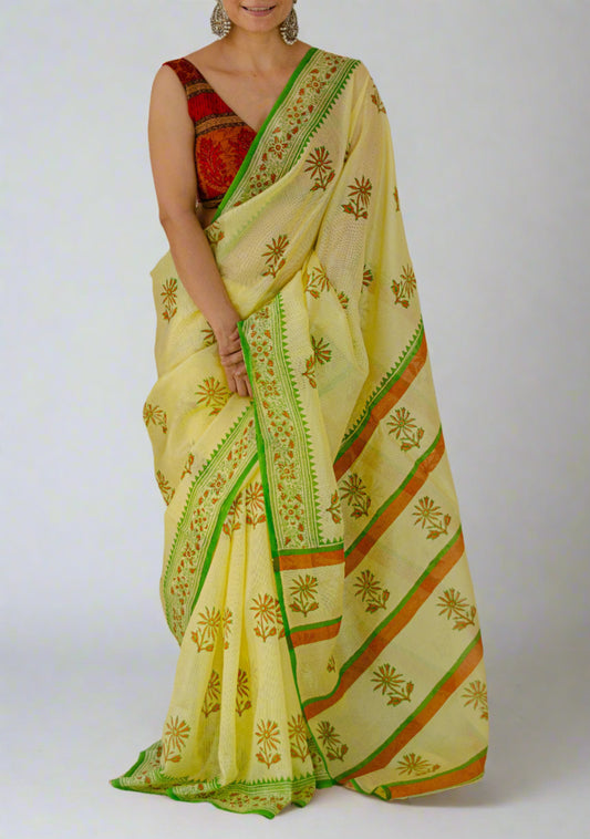 Hand Block Printed Natural Dyed Kota Silk Saree.
