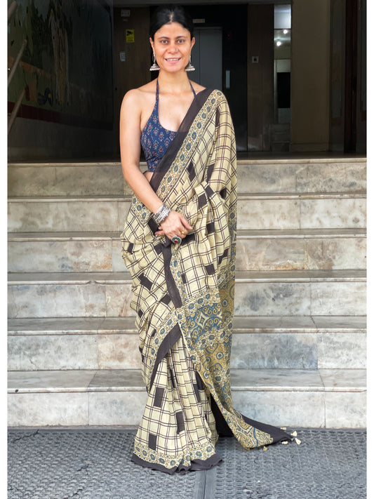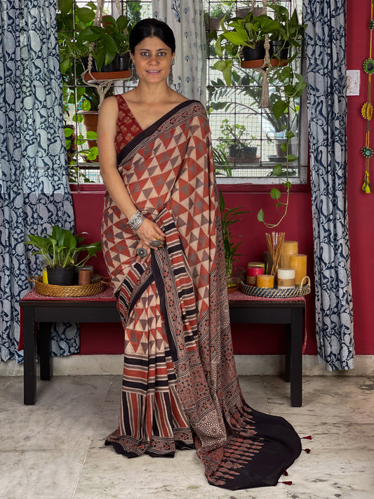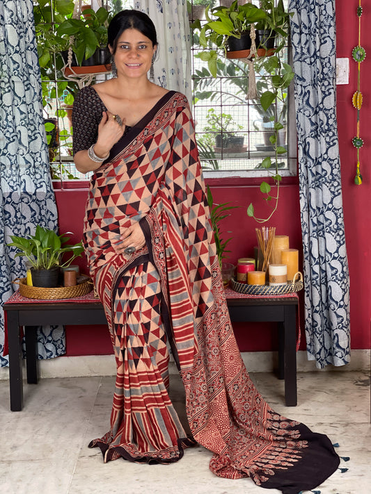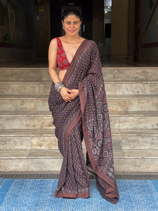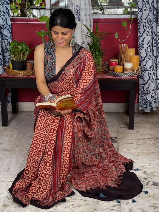 Handblock Printed Natural Dyed Ajrakh Mull Cotton Saree