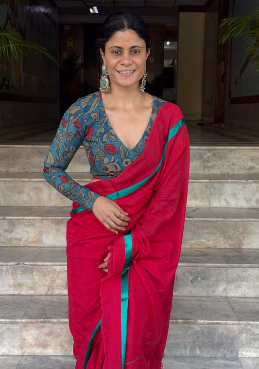 Handblock Printed Natural Dyed Ajrakh Mangalgiri Cotton Saree