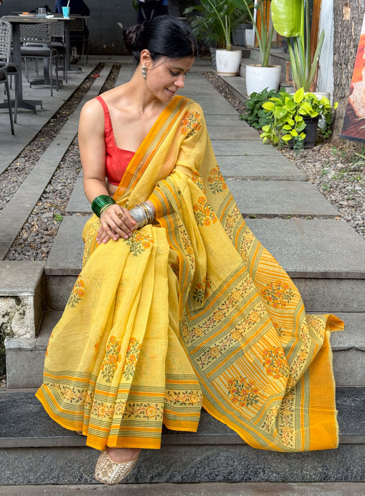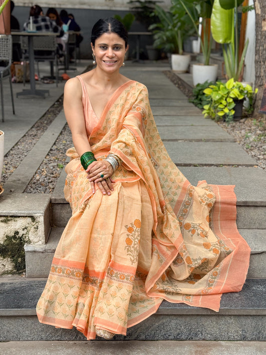 Hand block Printed Kota Doria Saree