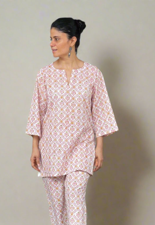 Handblock Printed Natural Dyed Ajrakh Mangalgiri Cotton Saree