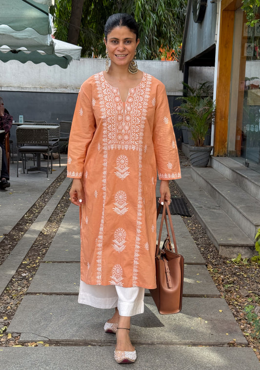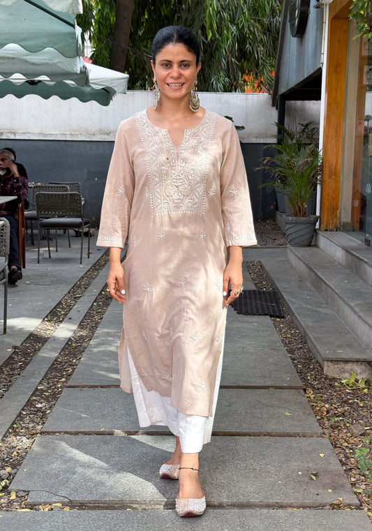 Handloom And Handembroidered Chikankari Cotton Kurta