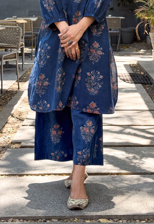 Handloom & handblock printed kurta and pant set.