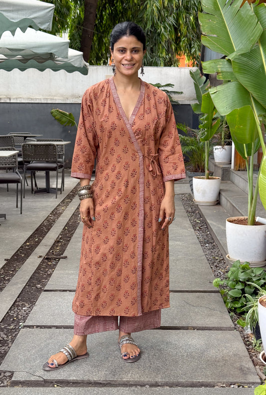 Handloom Muslin Jamdani with Handblock Printed Kurta.