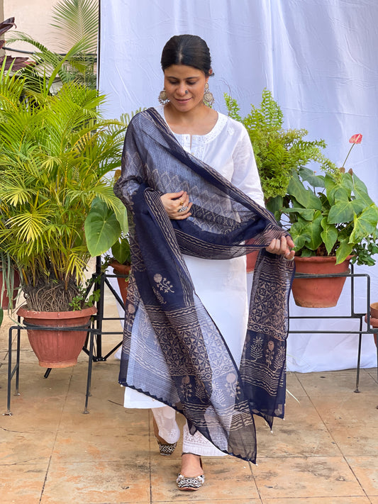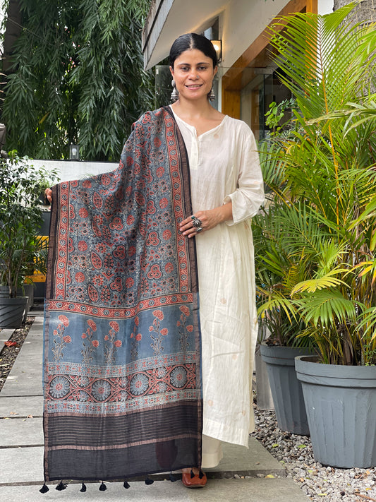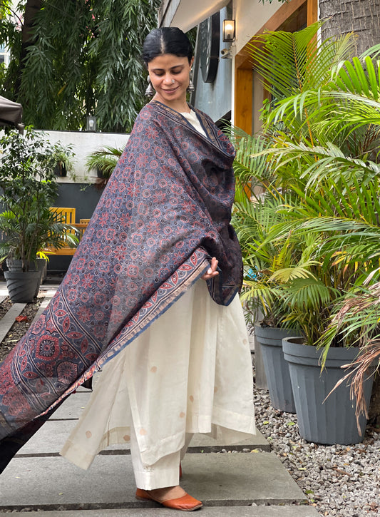 Natural Dyed Handblock Printed Ajrakh Chanderi Silk Dupatta