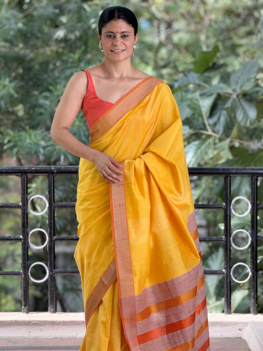 Handloom Tissue Silk Saree Adorned With Handmade Motifs