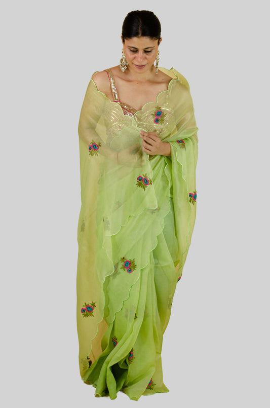 Sequence & Resham thread Hand Embroidered Handloom Organza Silk Saree.