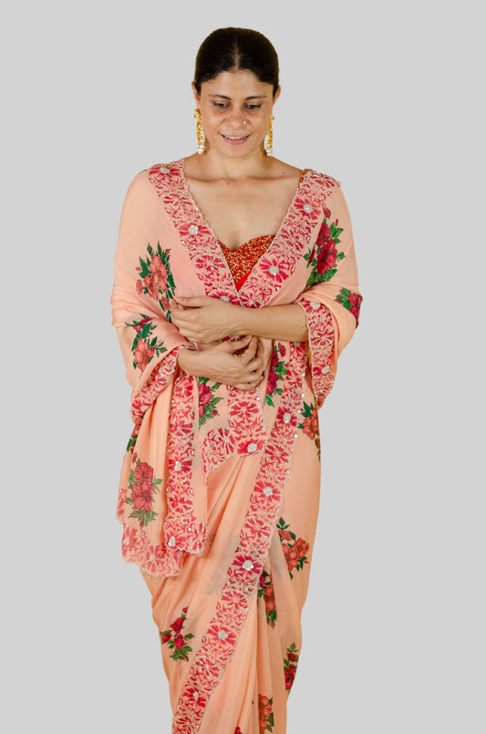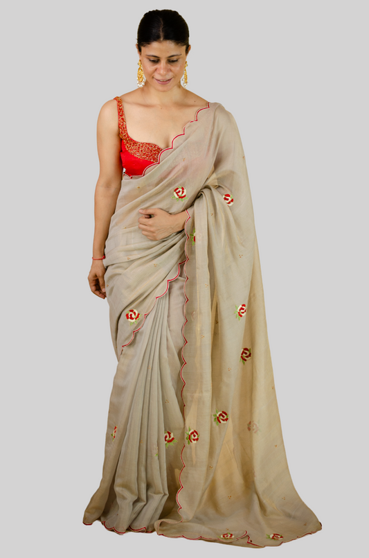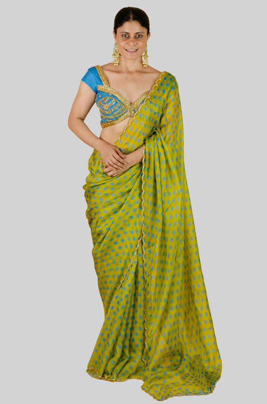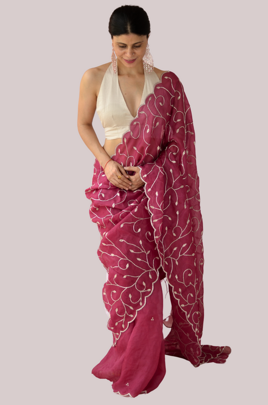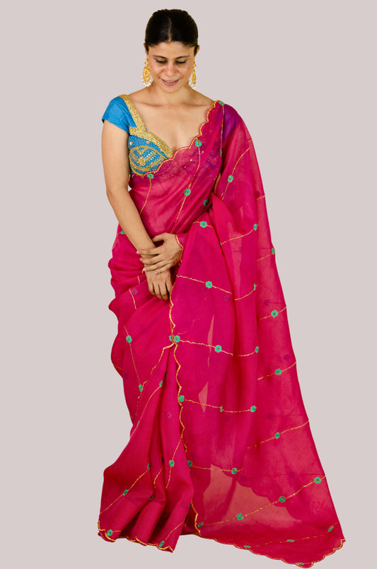 Zardosi and Beads Hand Embroidered Handloom Organza Silk Saree