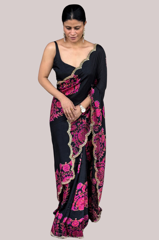 Sequence & Resham thread Hand Embroidered Handloom tissue Silk Saree.