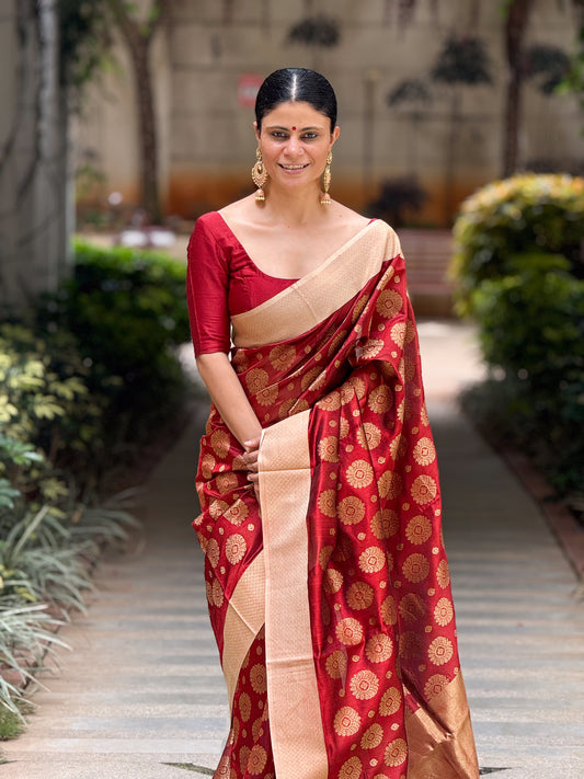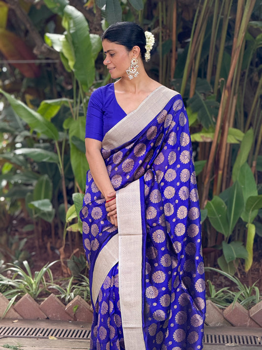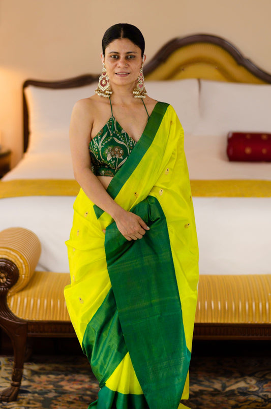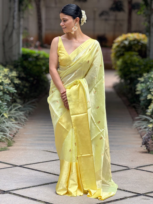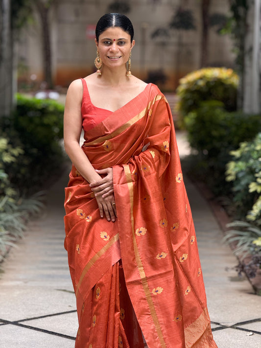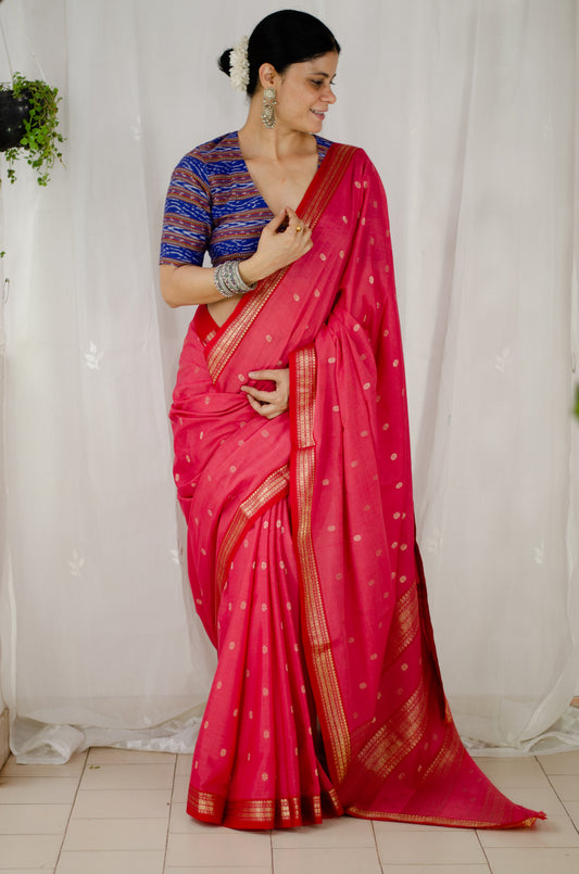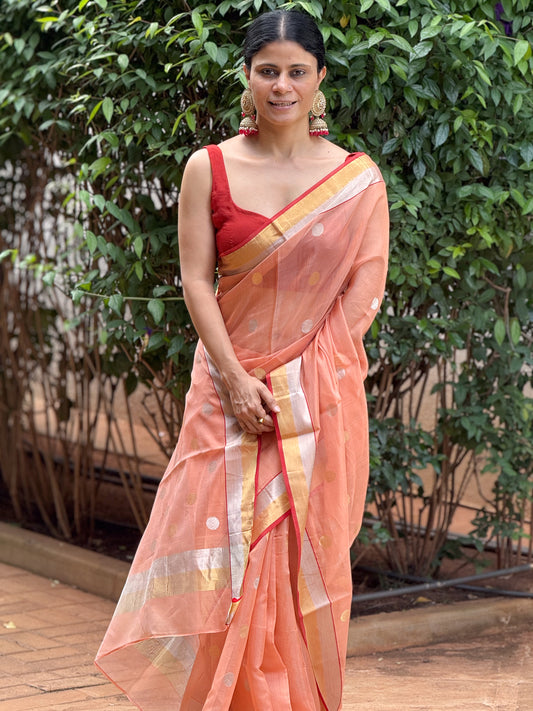 Double Woven handloom Traditional Indori Bootis Muslin Chanderi Saree.