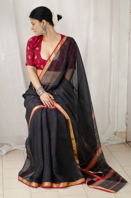 Handloom Chanderi Silk Saree With Mashru Silk Border