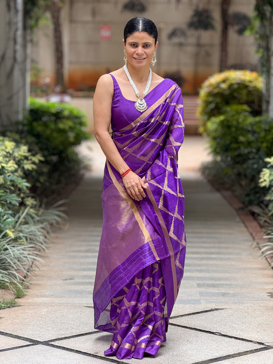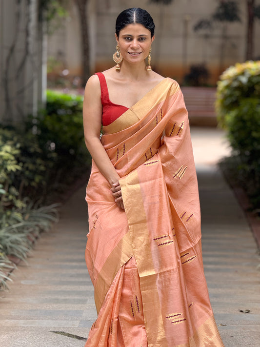 Handloom Chanderi Silk Saree With Zari Silk Border
