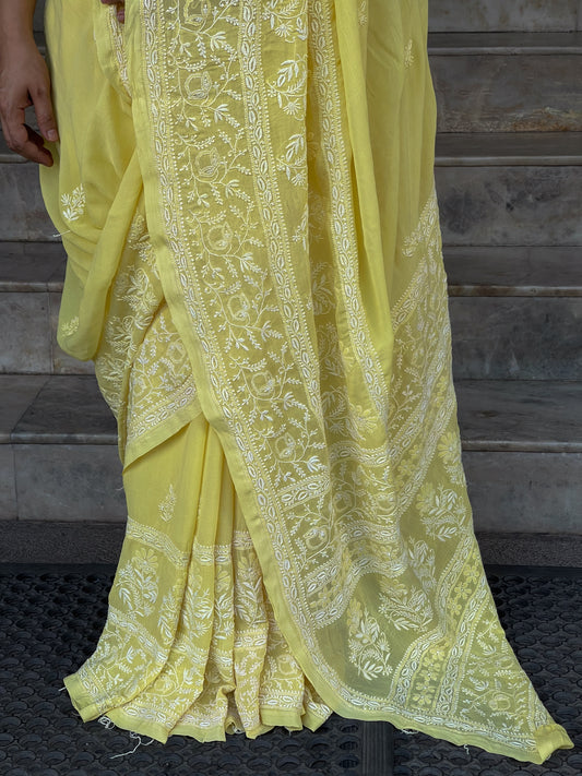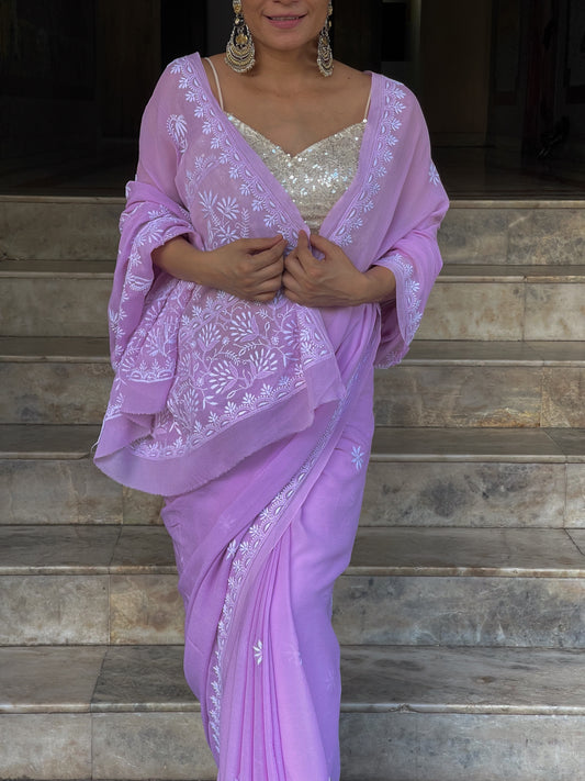 Handembroidered Chikanakri Pure georgette Silk Saree