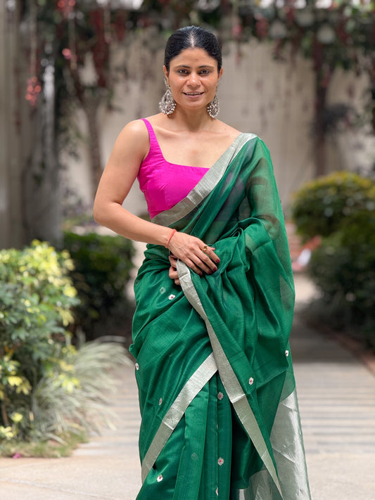 Handloom Chanderi Silk Saree With Zari Silk Border