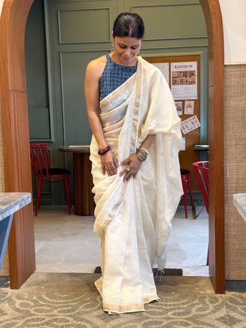 Completely handmade, this saree reflects the essence of slow fashion — timeless, mindful, and made with care.