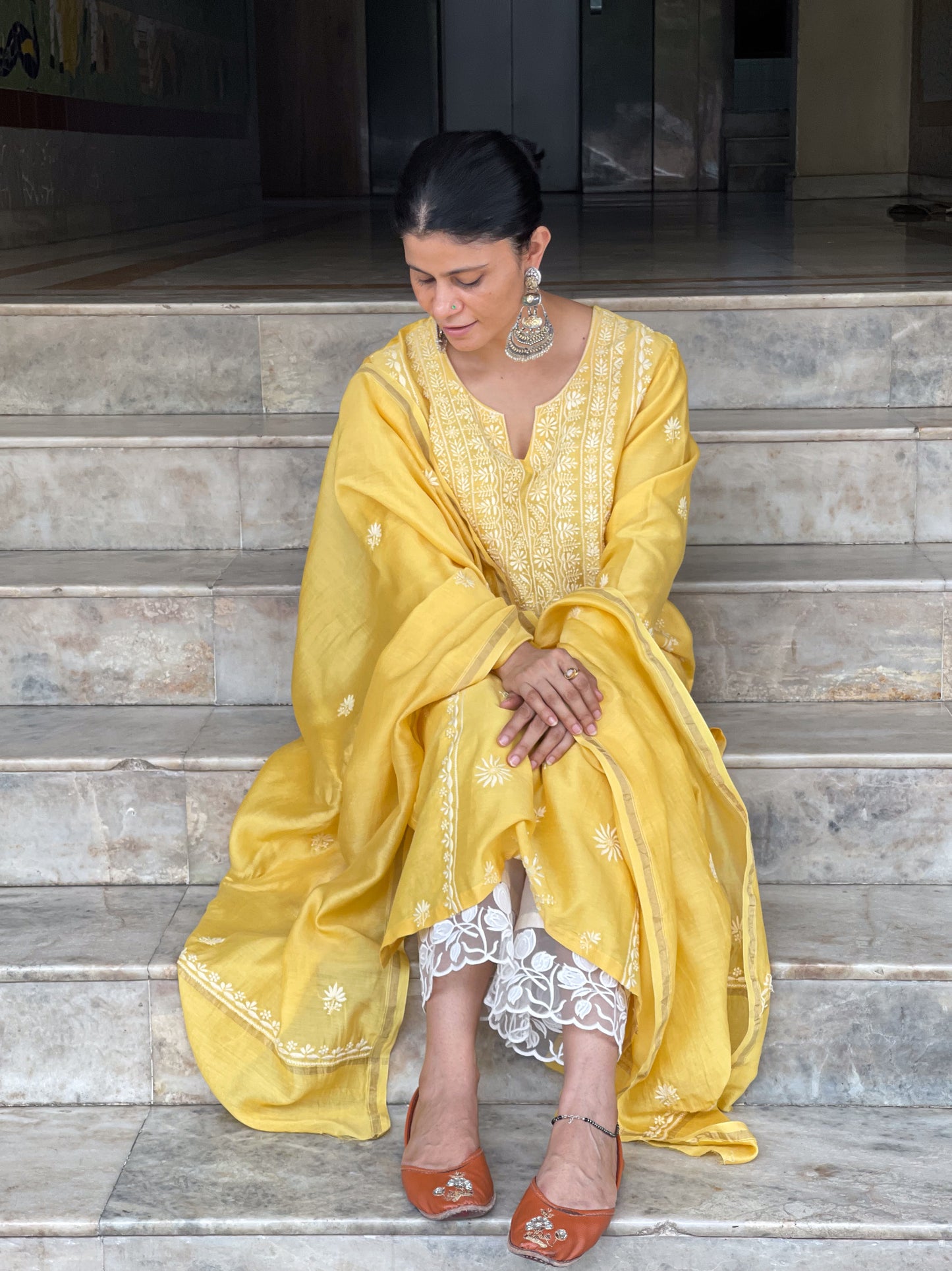 About the dupatta- Handembroidered Chikankari Chanderi Silk Dupatta