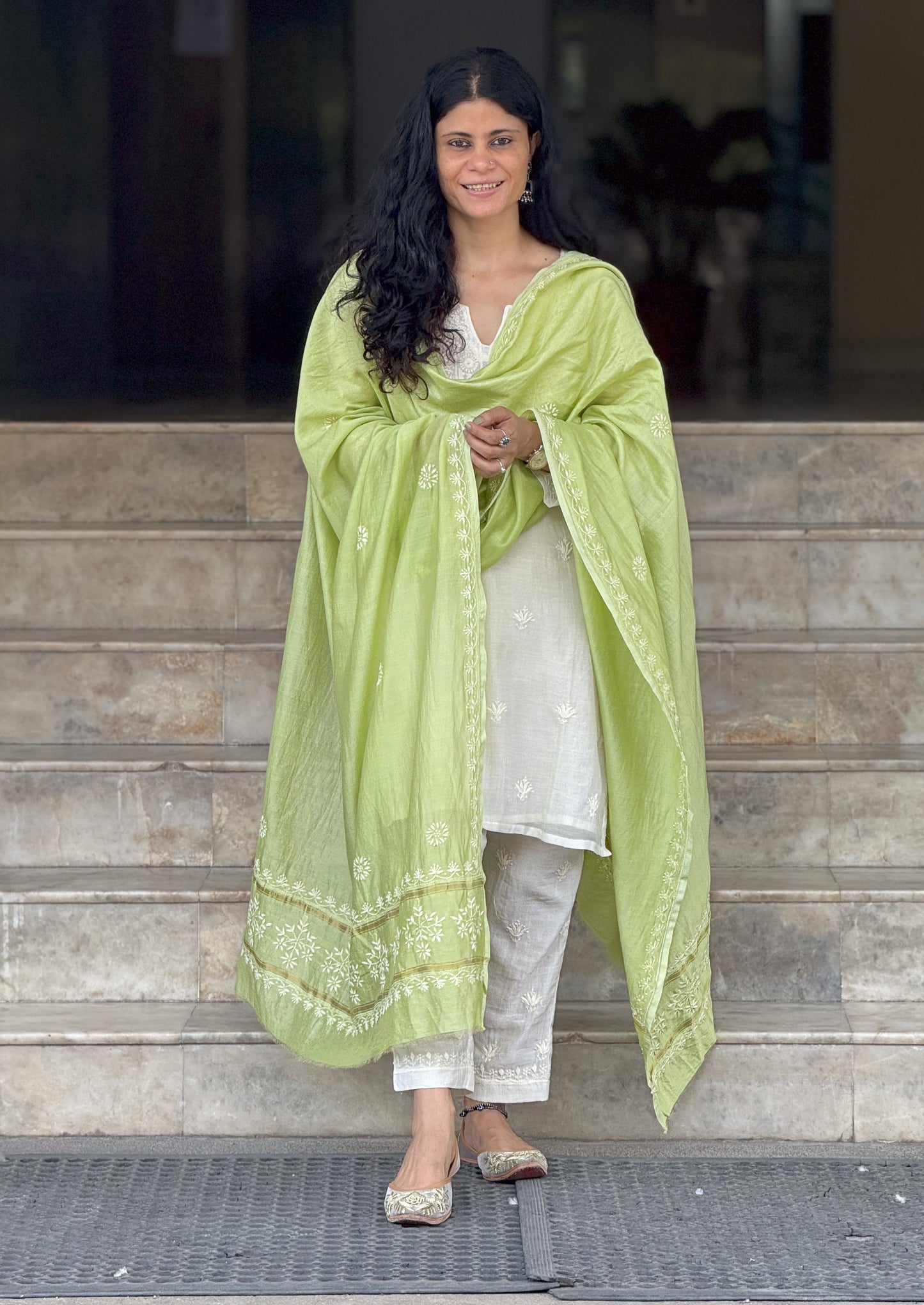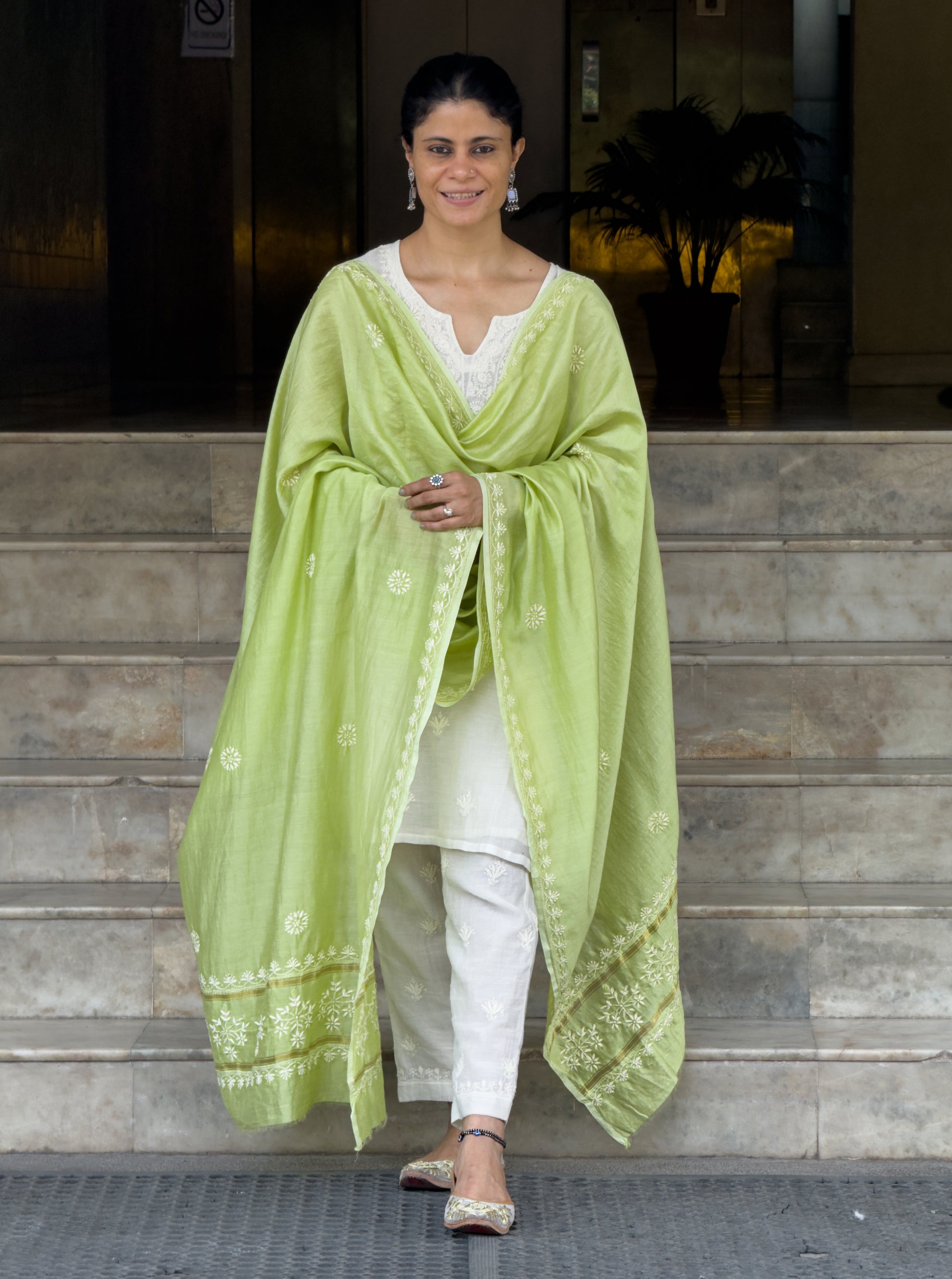 About the dupatta- Handembroidered Chikankari Chanderi Silk Dupatta