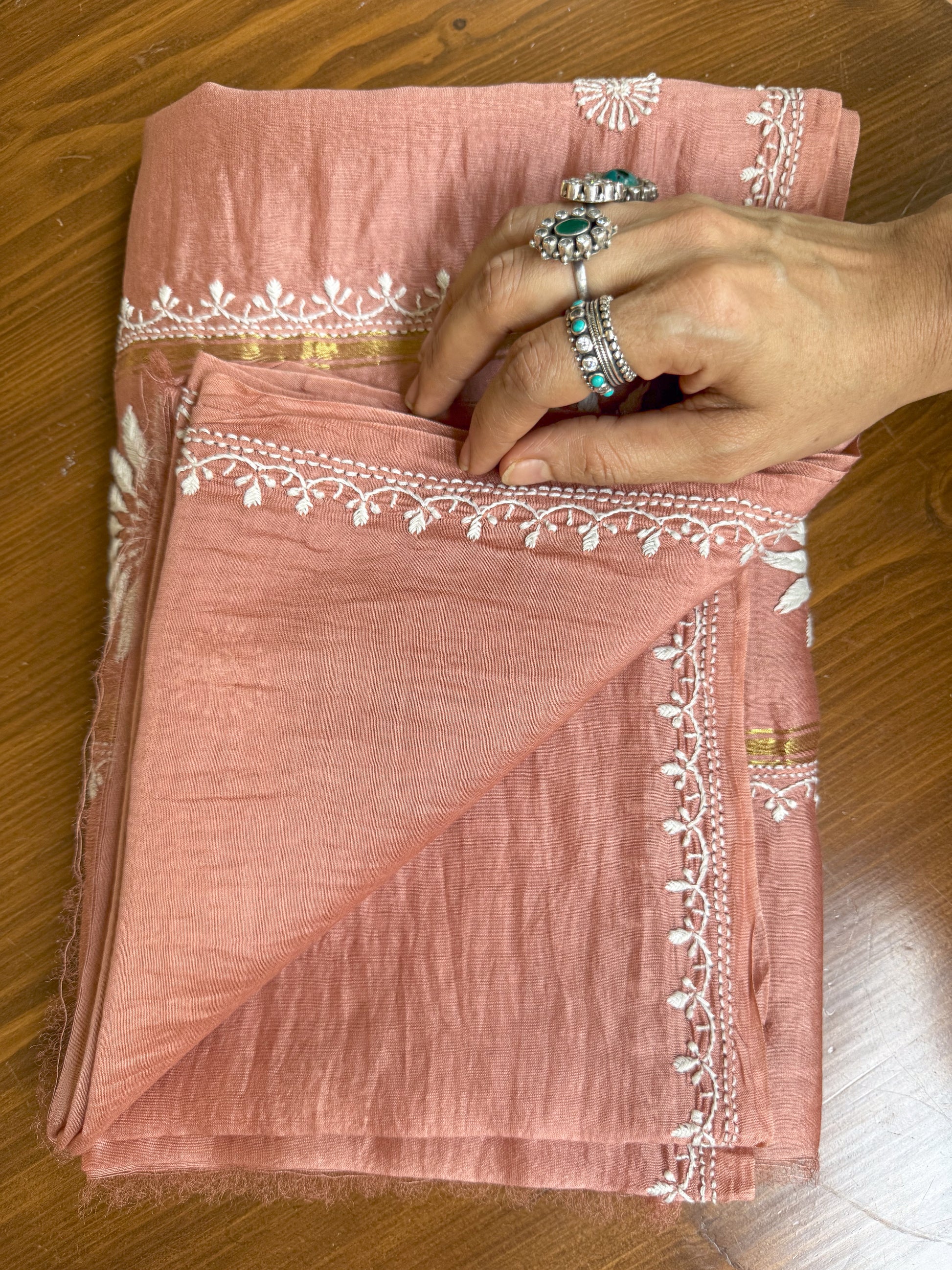 Chanderi Silk Handembroidered Chikankari Dupatta