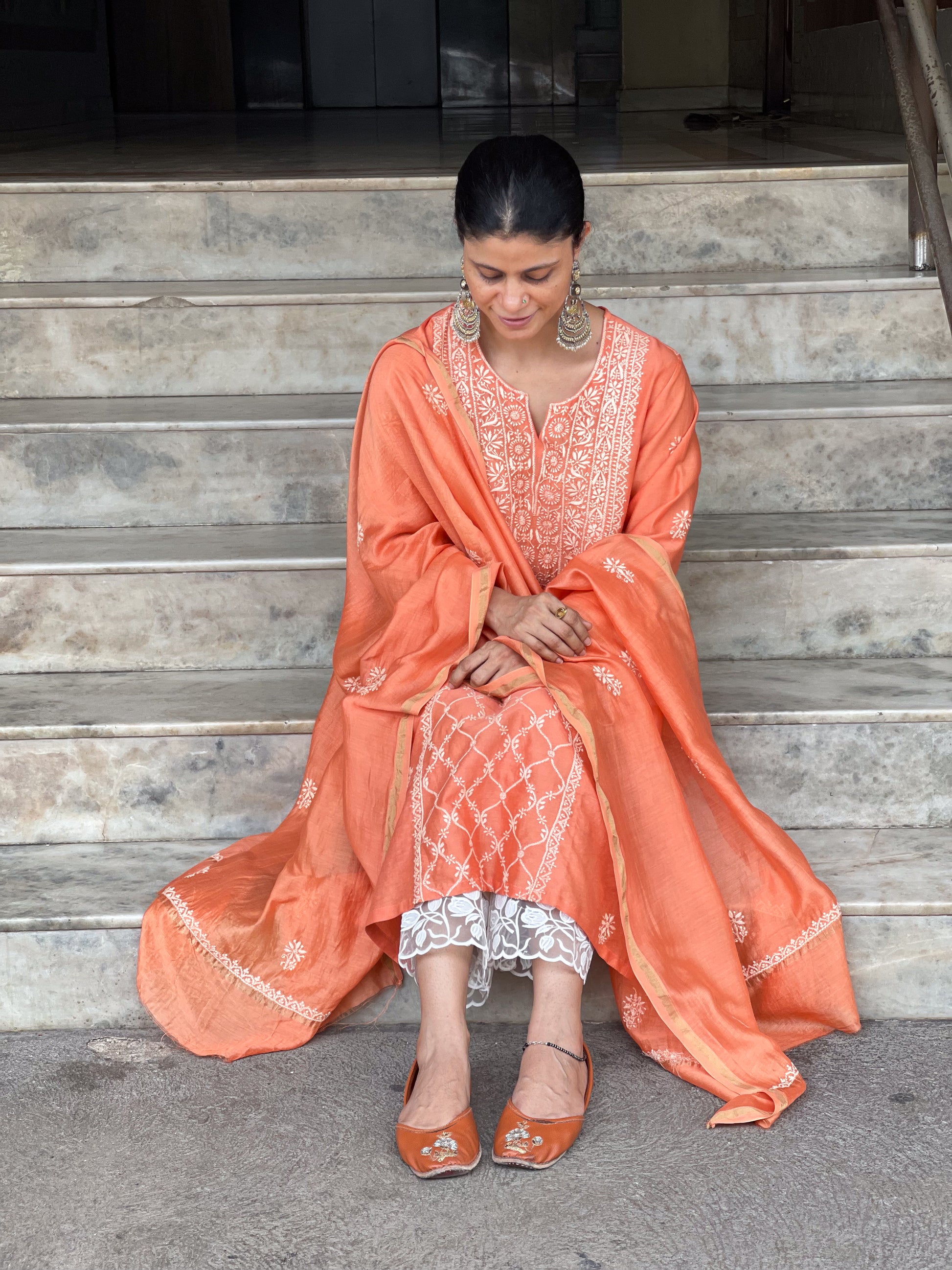 About the dupatta- Handembroidered Chikankari Chanderi Silk Dupatta