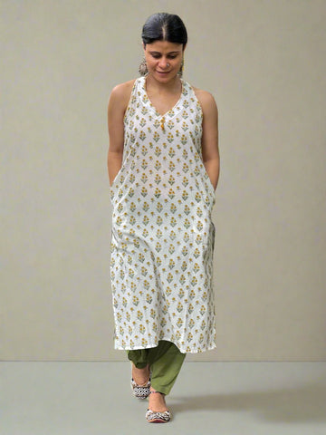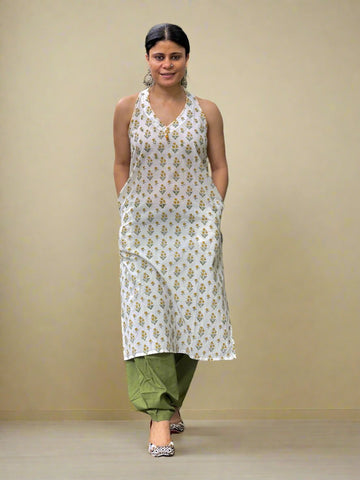 Handblock printed & Hand embroidered Kurta