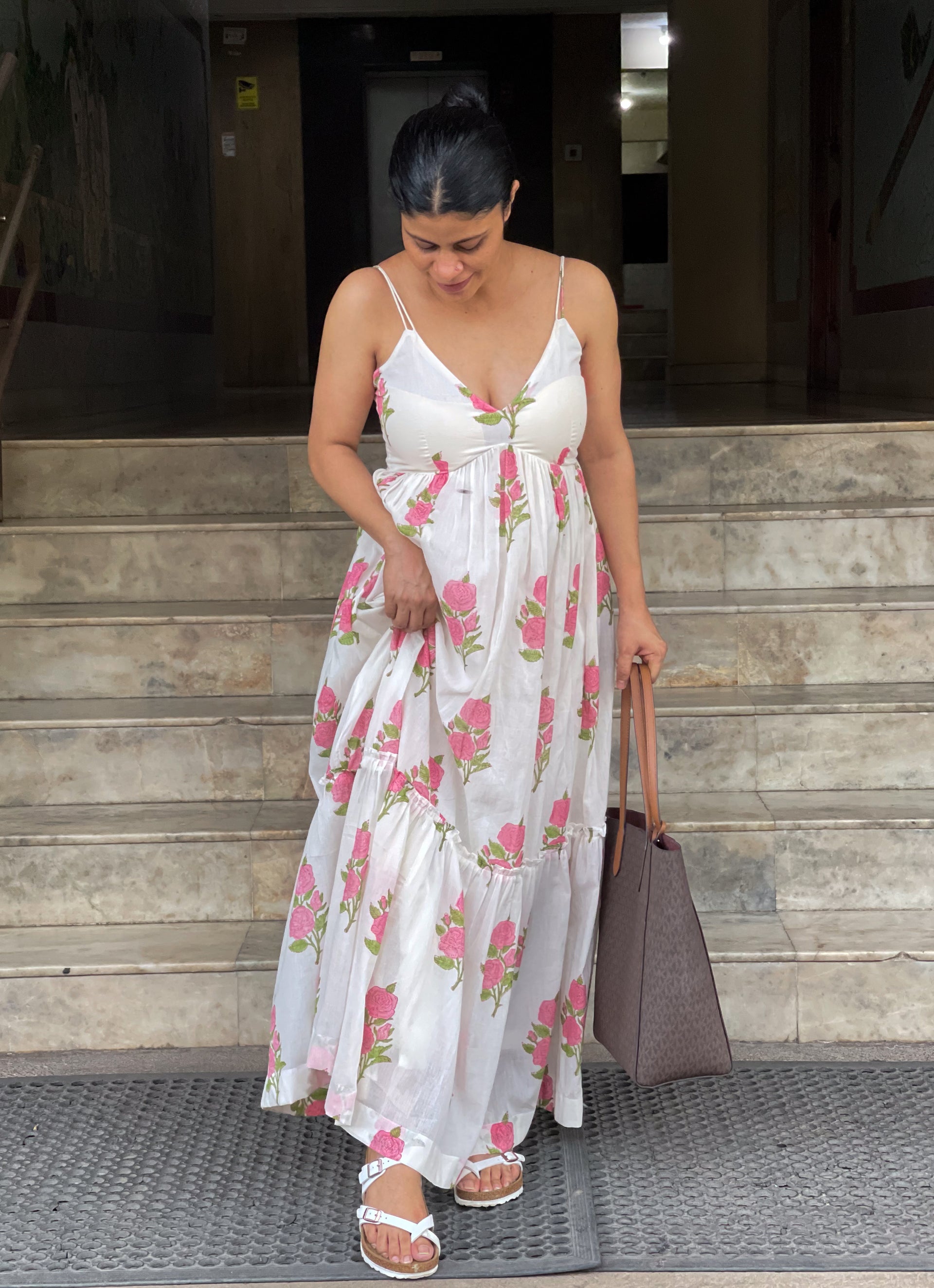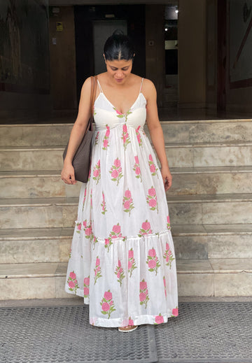 : Handwoven JamdaniHandblock Printed Mull Cotton Dress