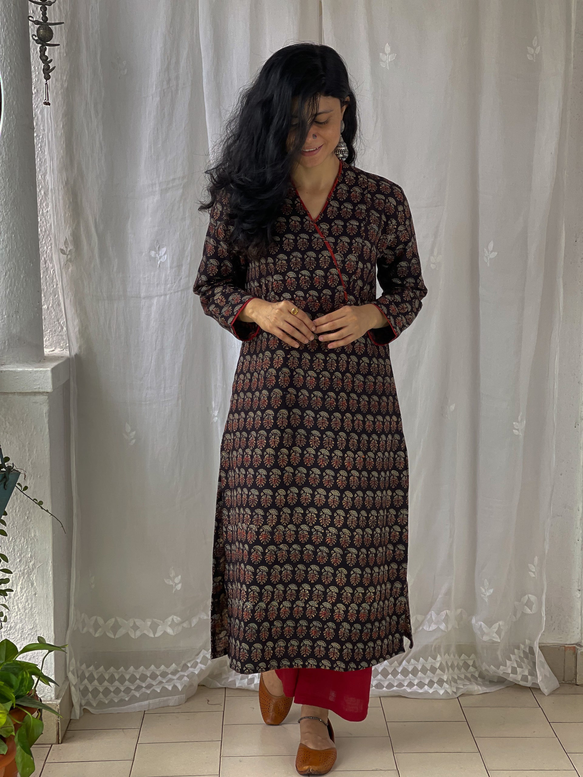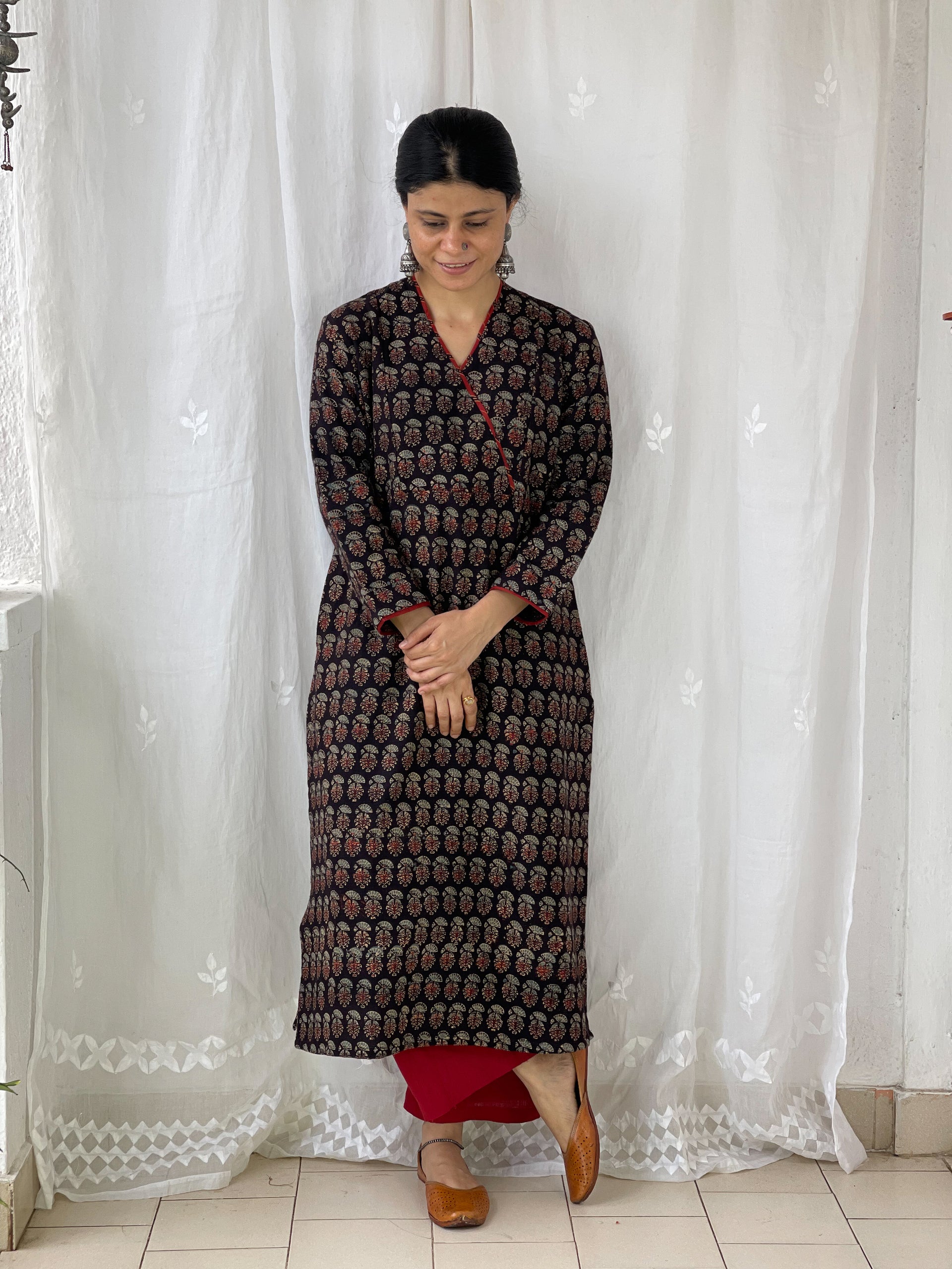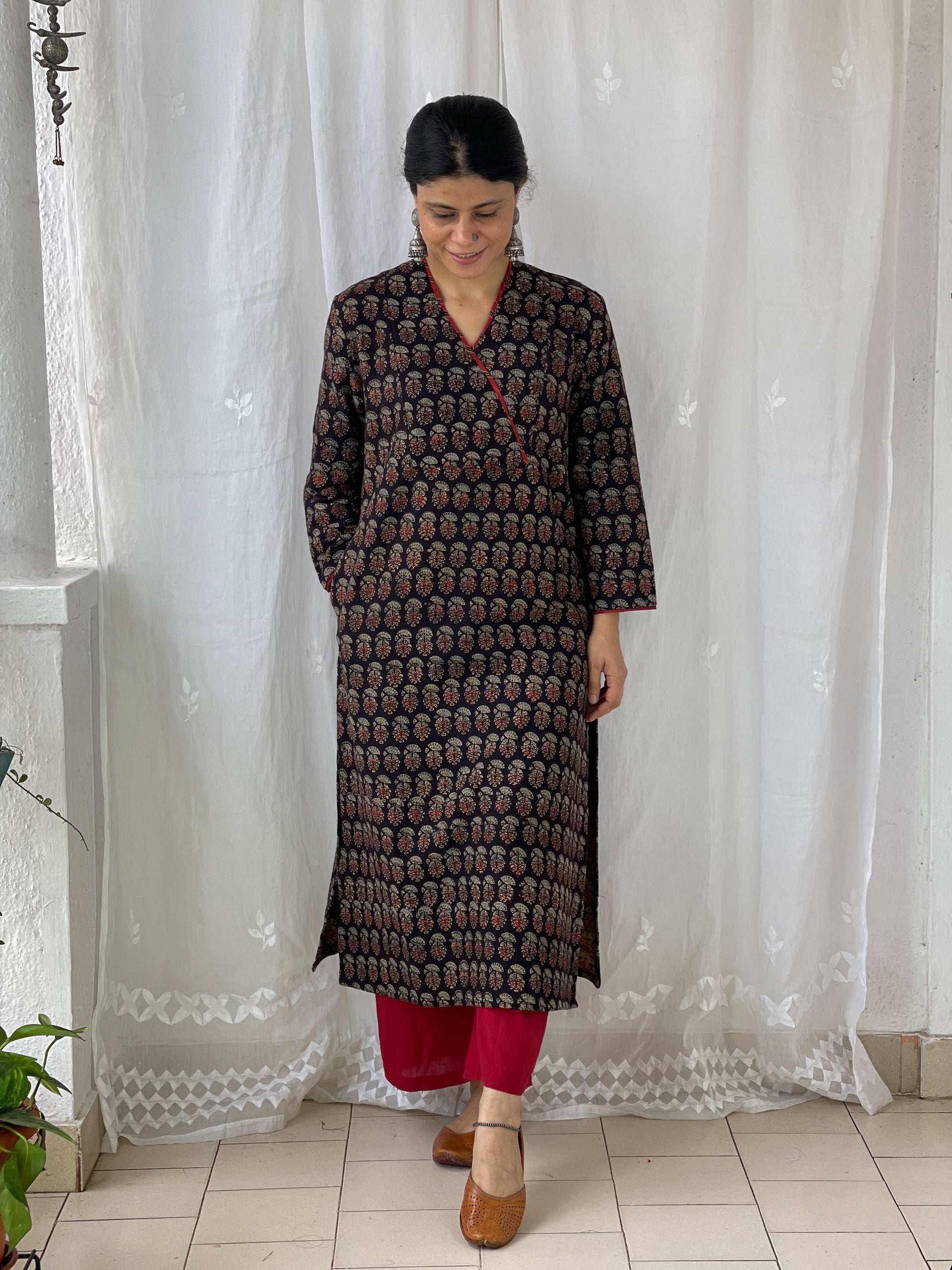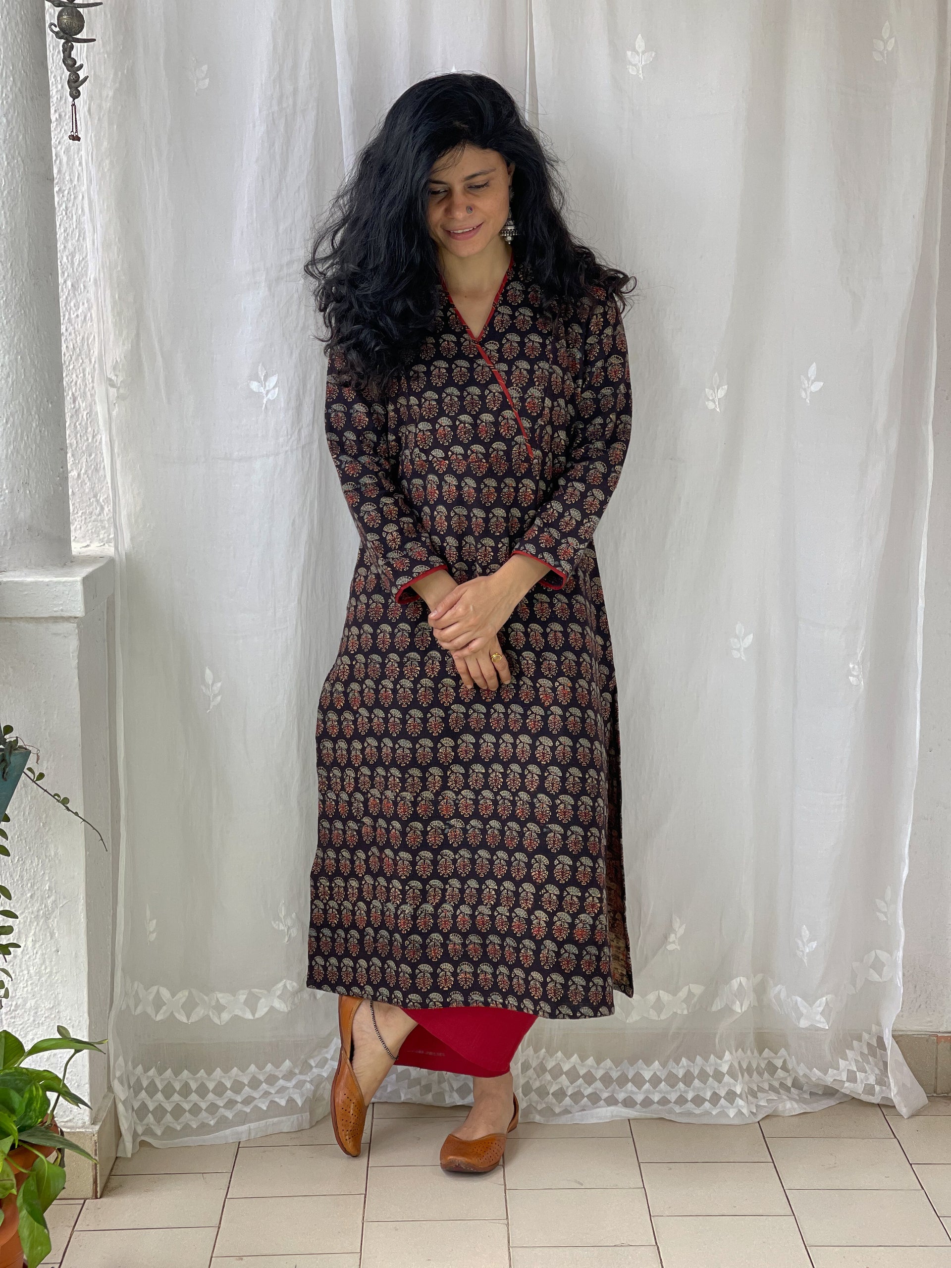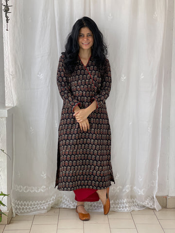 : Pure CottonCotton Handblock Printed Natural Dyed Ajrakh Kurta