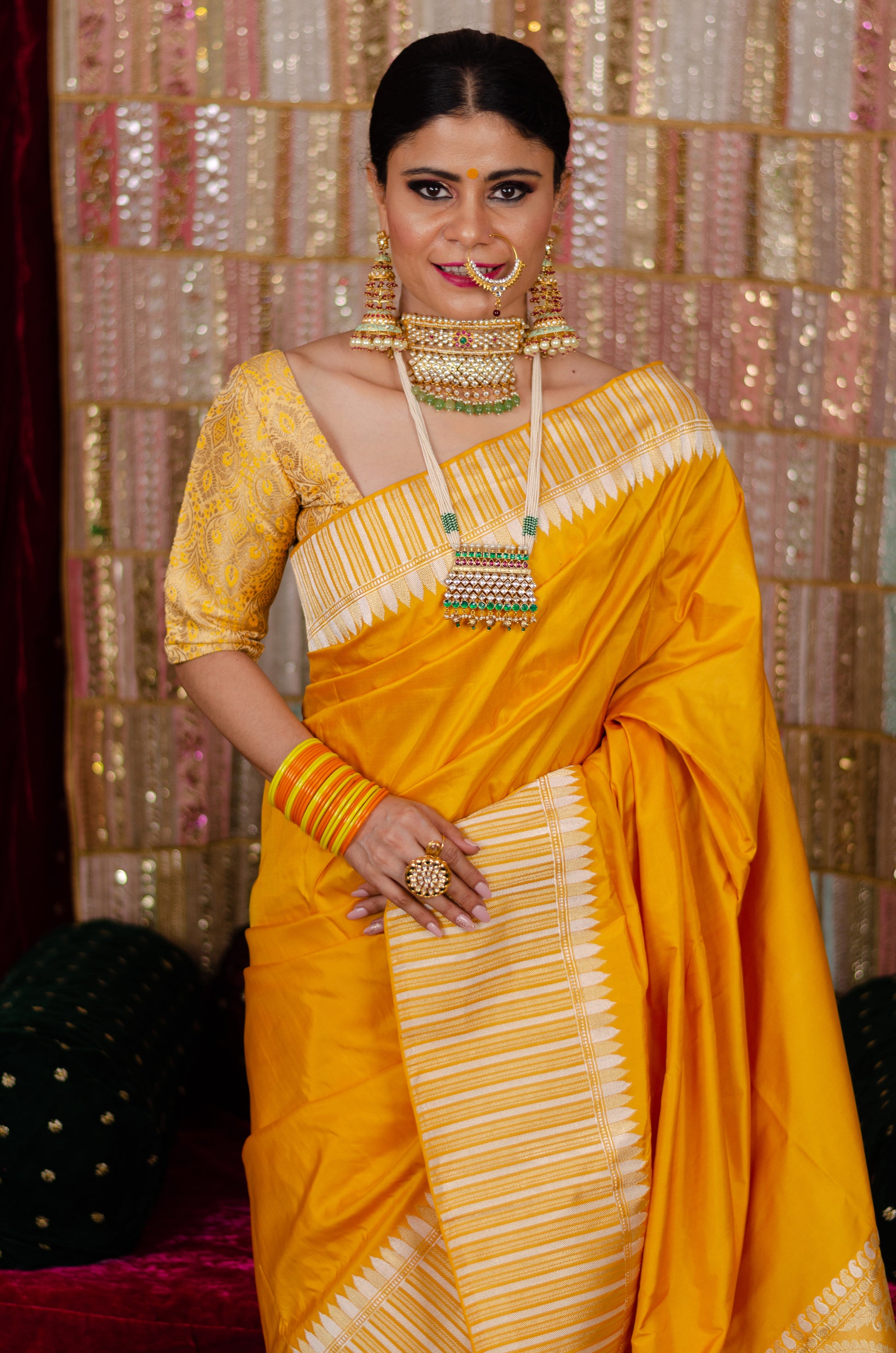 Haldi Yellow Colour Handwoven Kadwa Katan Silk Banarasi Saree