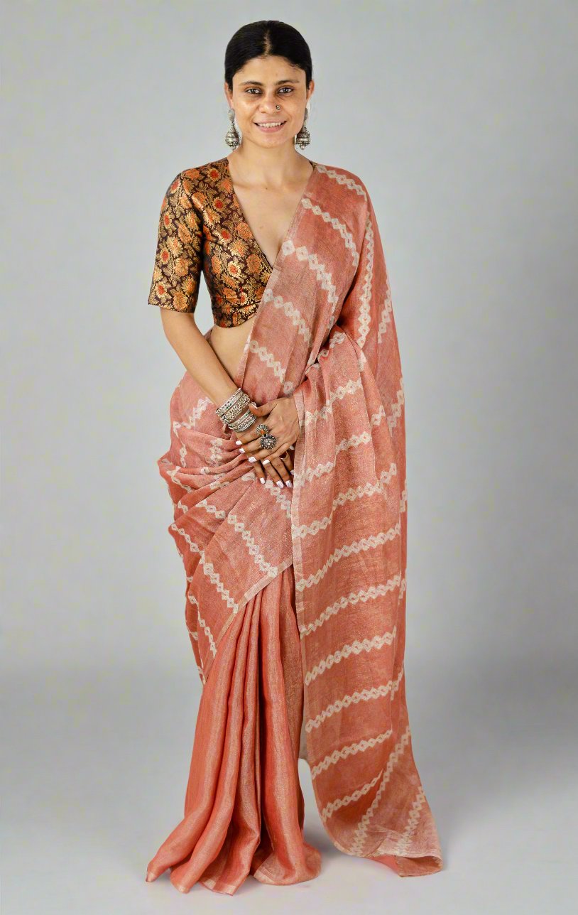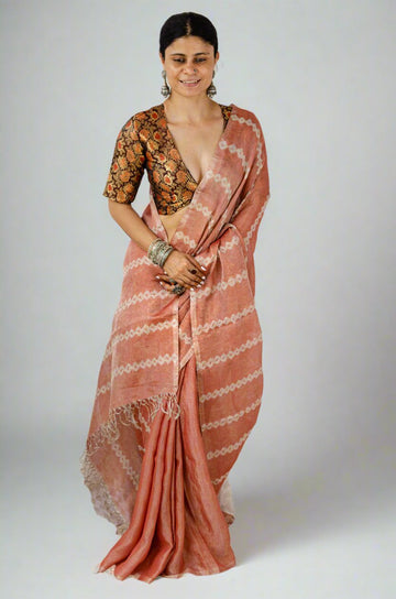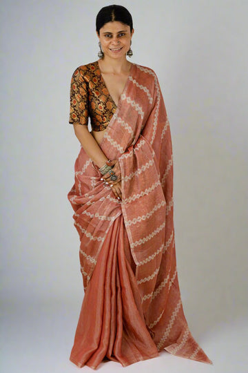 Natural dyed pure kota silk saree in handmade arashi shibori. Saree has been processed through natural dyed with handmade shibori design by group of women artisans