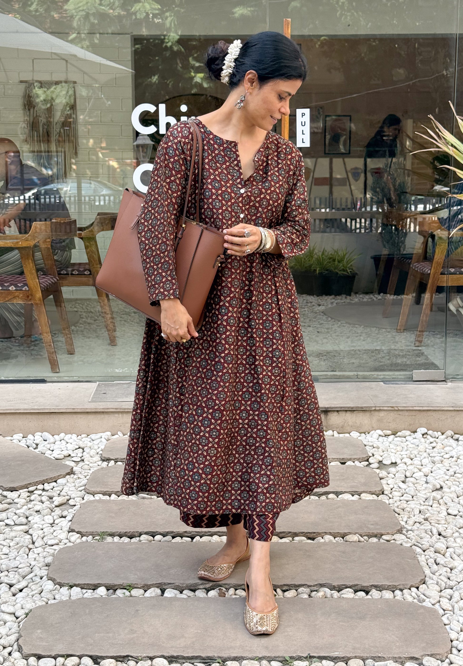 About the Kurta- Handblock Printed Natural Dyed Ajrakh Chanderi Silk Kalidar Kurta