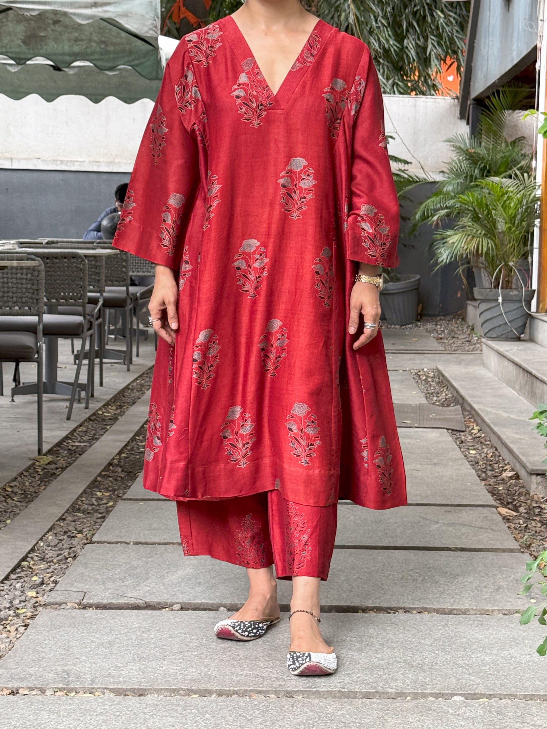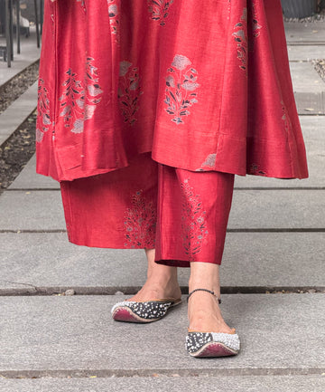 Handblock Printed Natural Dyed Ajrakh Chanderi Silk Pant