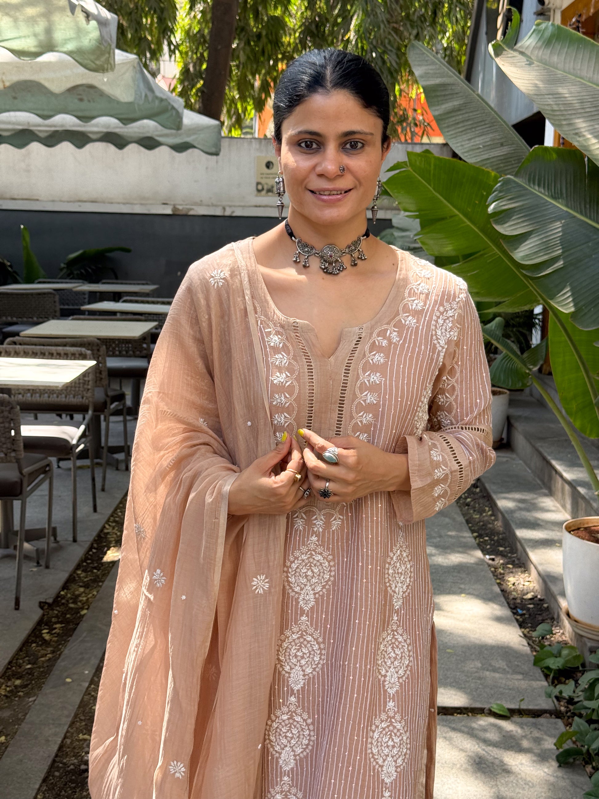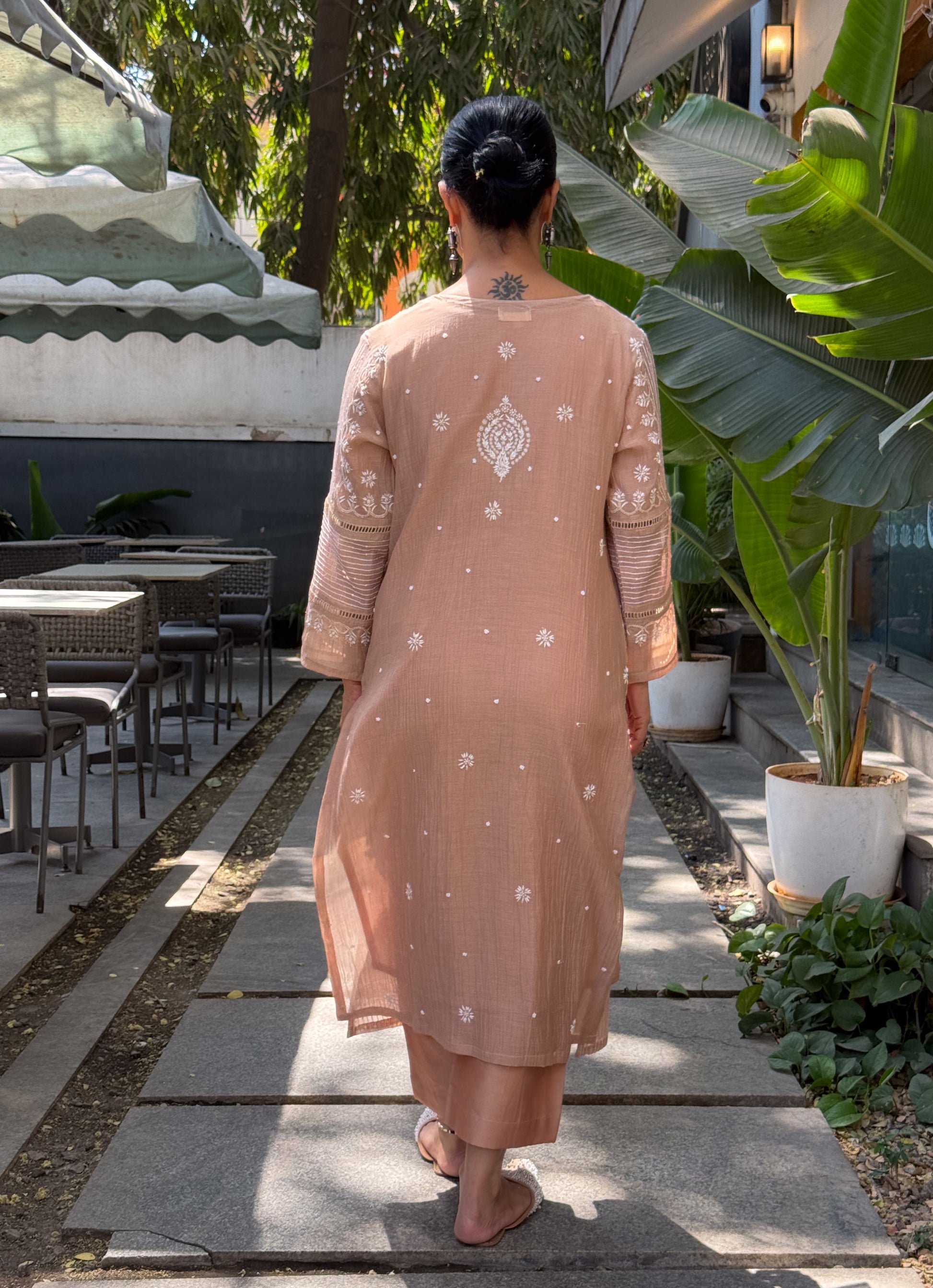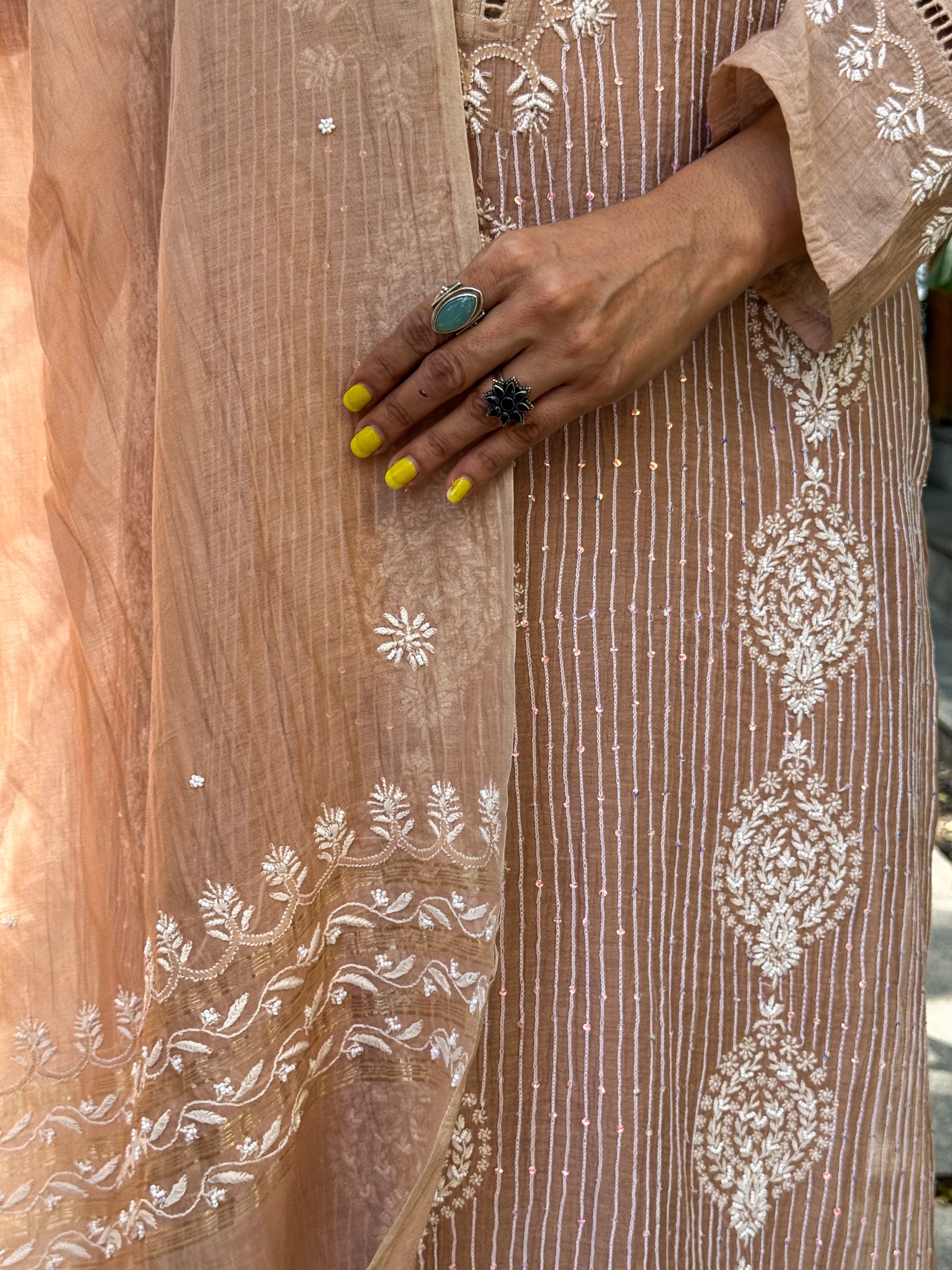 About the Kurta- Handembroidered Chikankari chanderi muslin kurta and dupatta