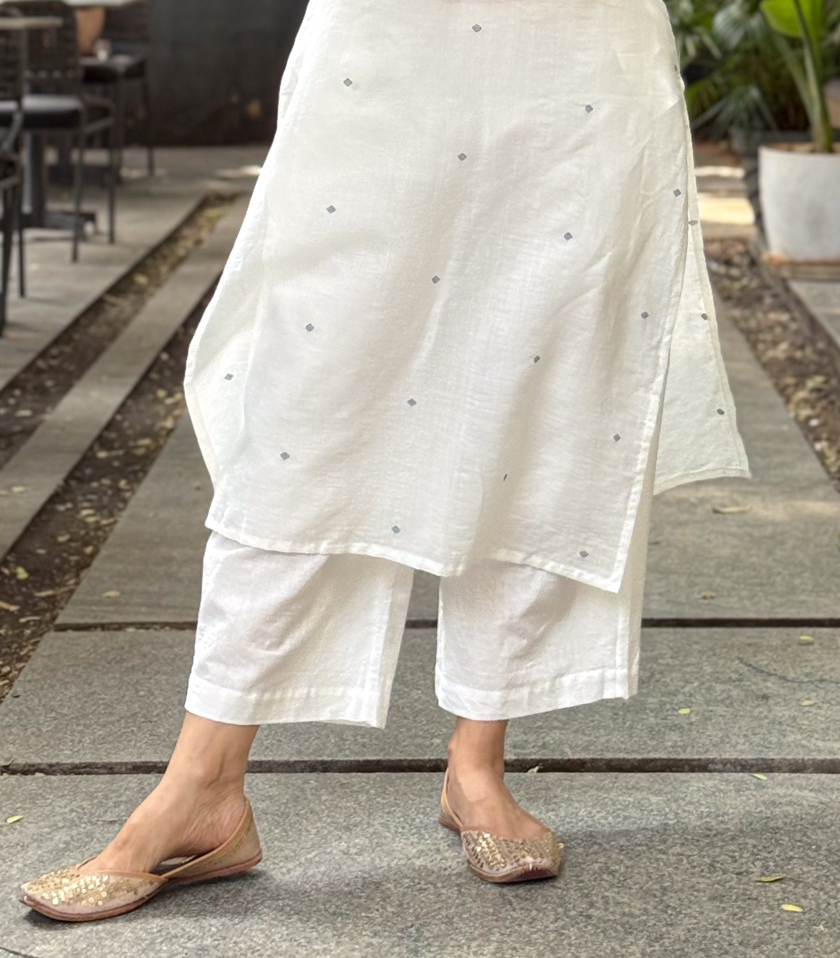 Speciality - The handloom texture , plain design allows for effortless pairing with any top, kurta, or tunic, creating a clean and timeless look.Designed with a relaxed fit and straight or slightly tapered legs (depending on style), they provide both comfort and effortless style.