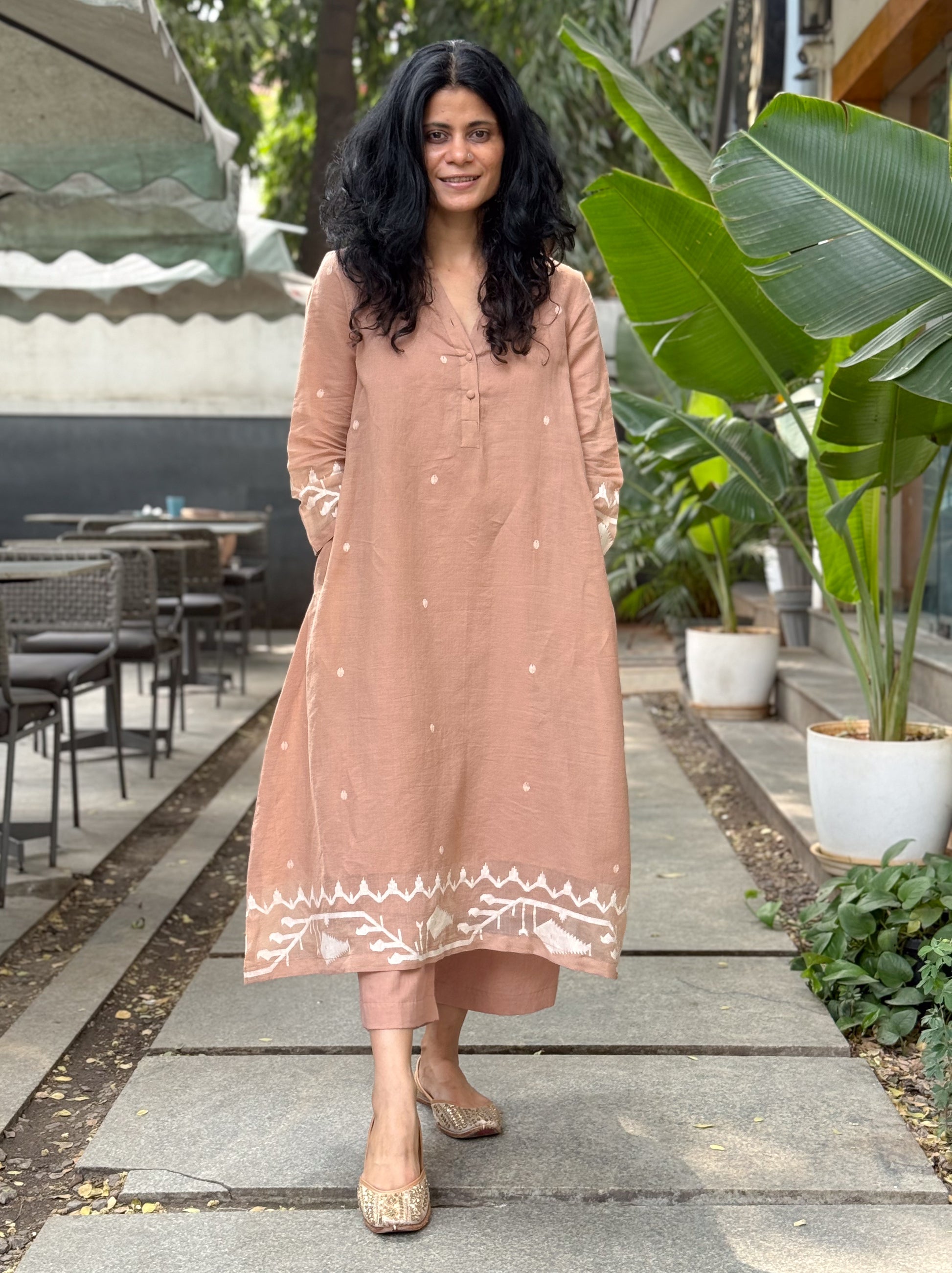 Speciality - The handloom texture , plain design allows for effortless pairing with any top, kurta, or tunic, creating a clean and timeless look.Designed with a relaxed fit and straight or slightly tapered legs (depending on style), they provide both comfort and effortless style.