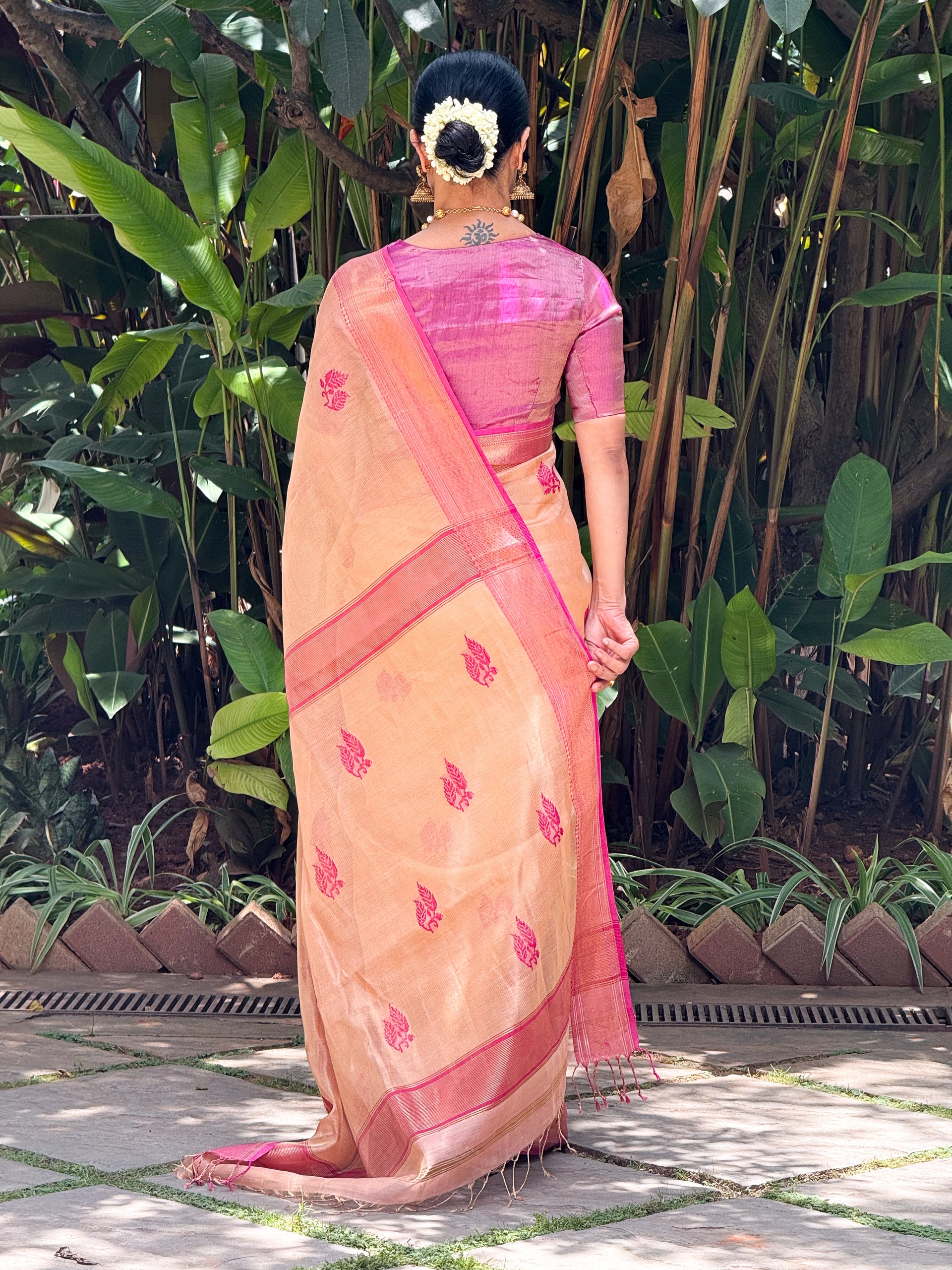 About the Saree - It is a collection of handloom tissue silk saree adorned with handmade motifs