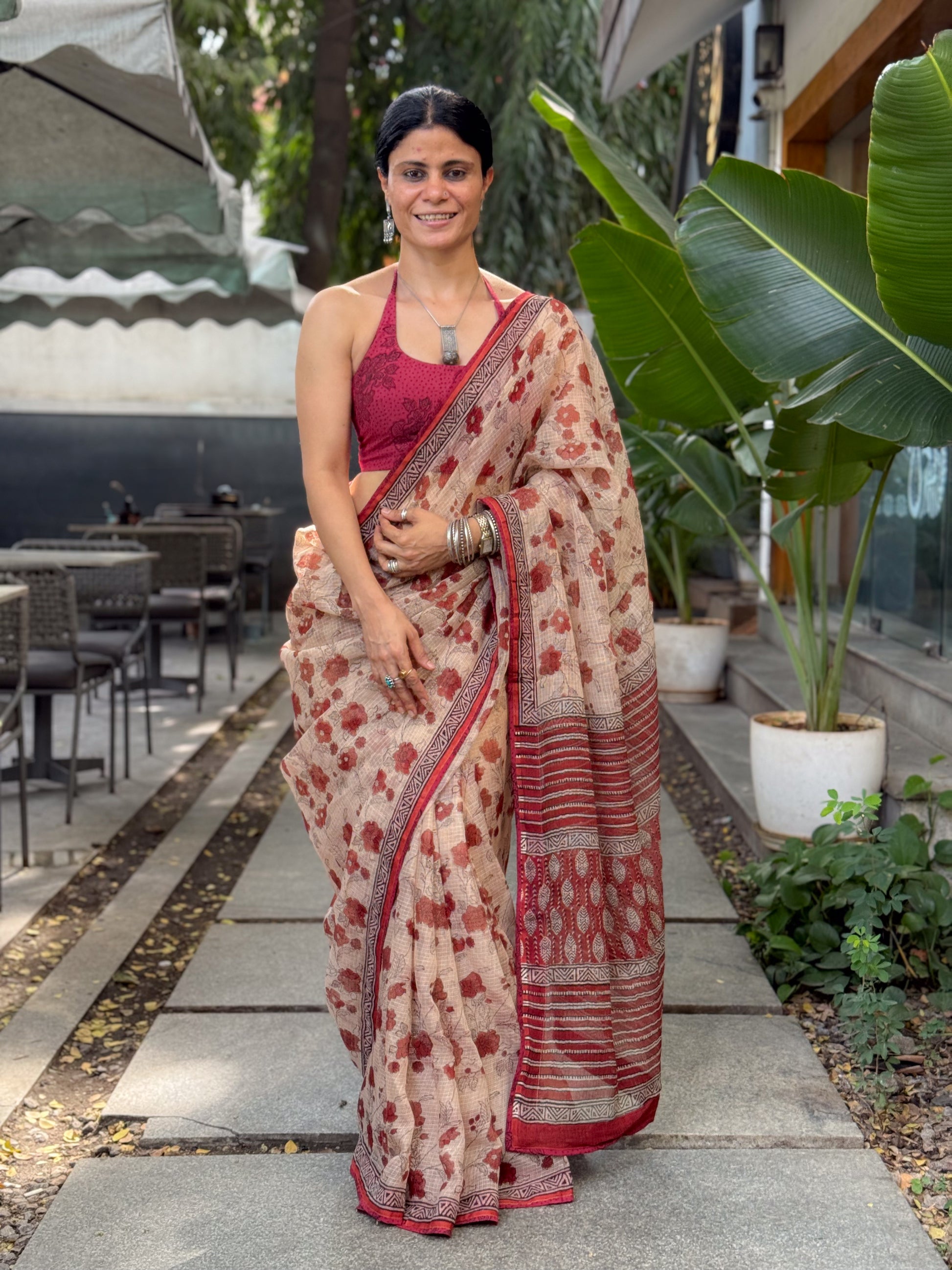Disclaimer - As this saree is handmade, handblock printed, and naturally dyed, slight irregularities in weave, print, or color are natural and celebrated as a mark of true craftsmanship. Colors may vary slightly due to photography or individual screen settings.