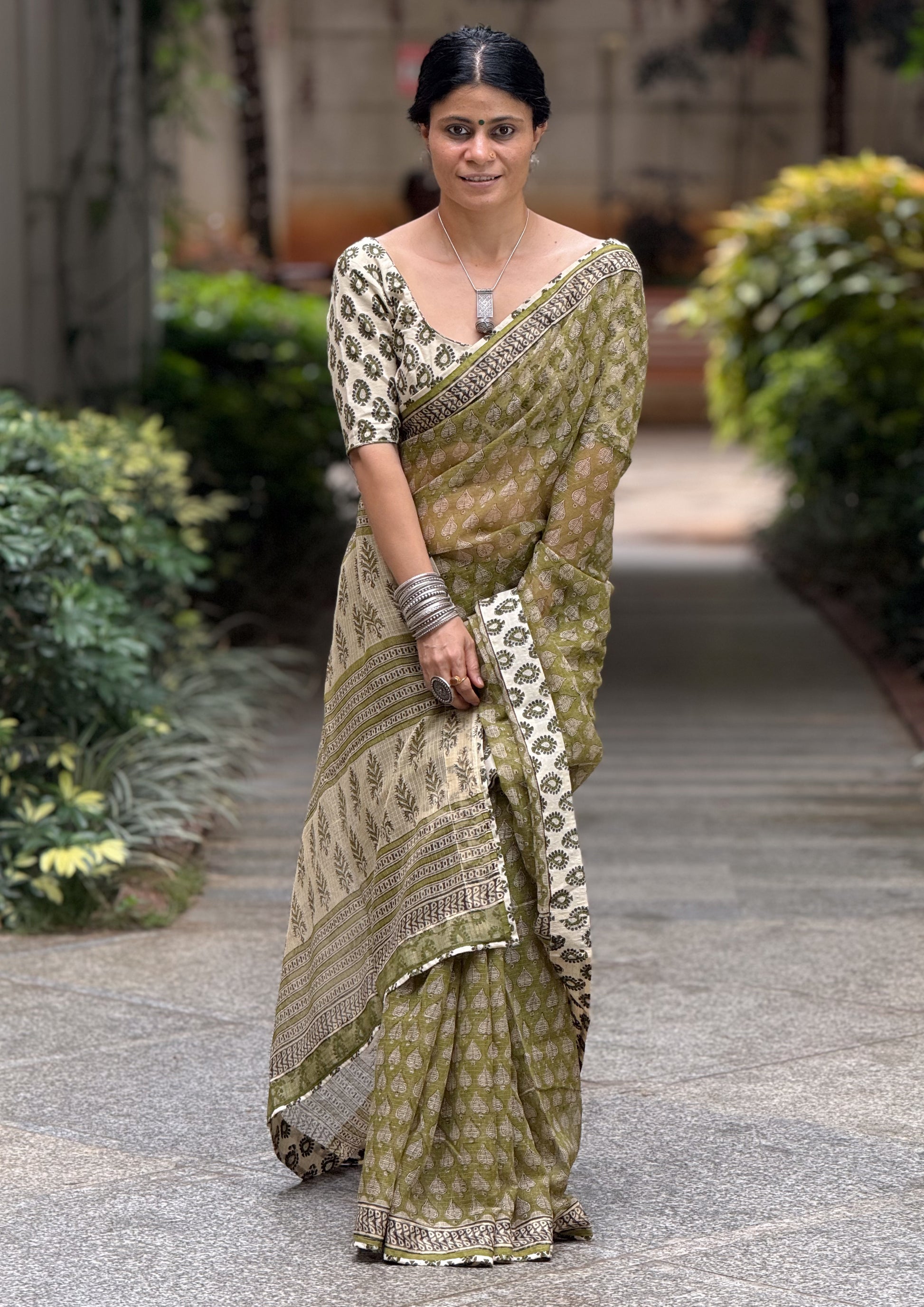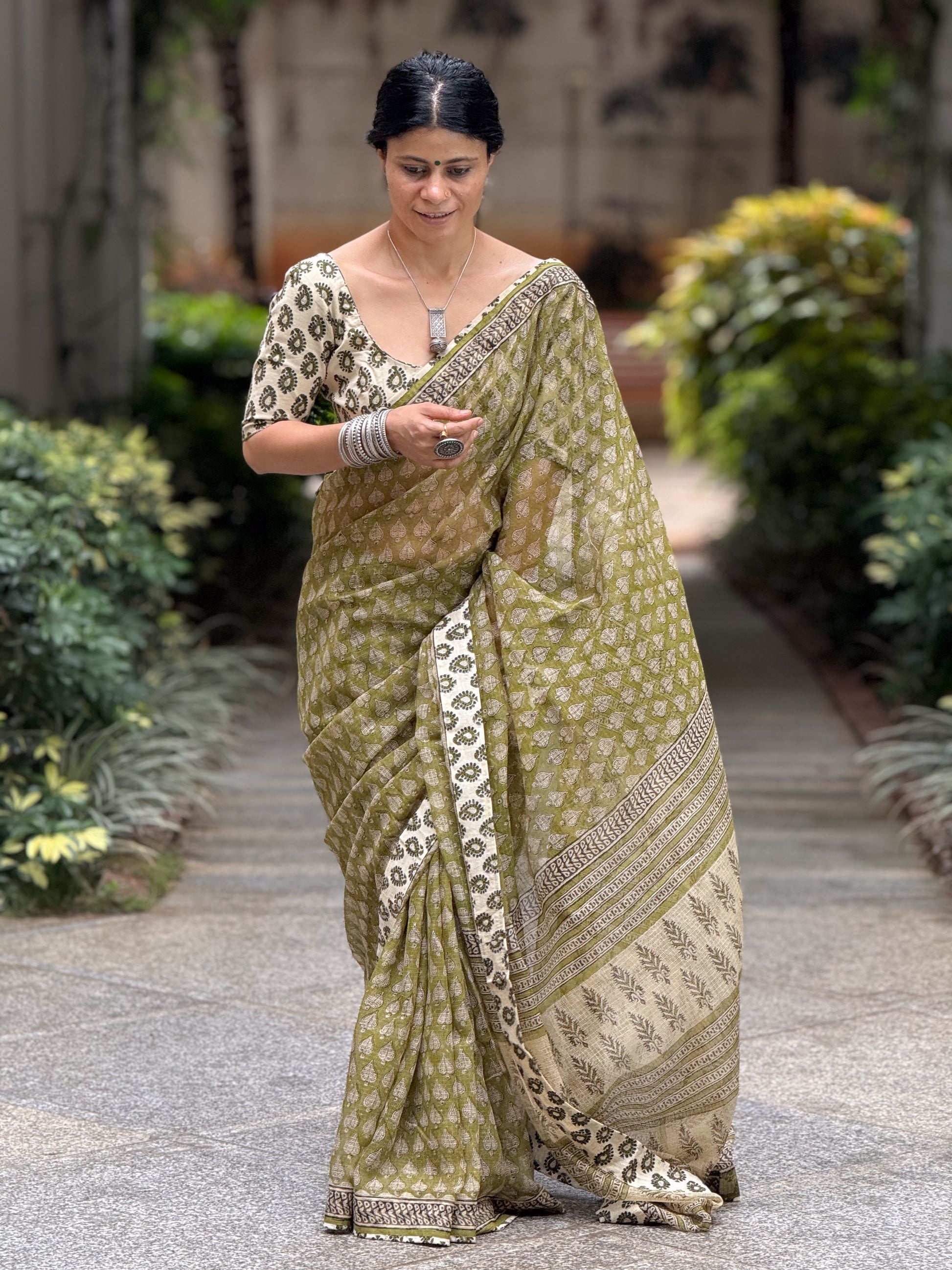 Disclaimer - As this saree is handmade, handblock printed, and naturally dyed, slight irregularities in weave, print, or color are natural and celebrated as a mark of true craftsmanship. Colors may vary slightly due to photography or individual screen settings.