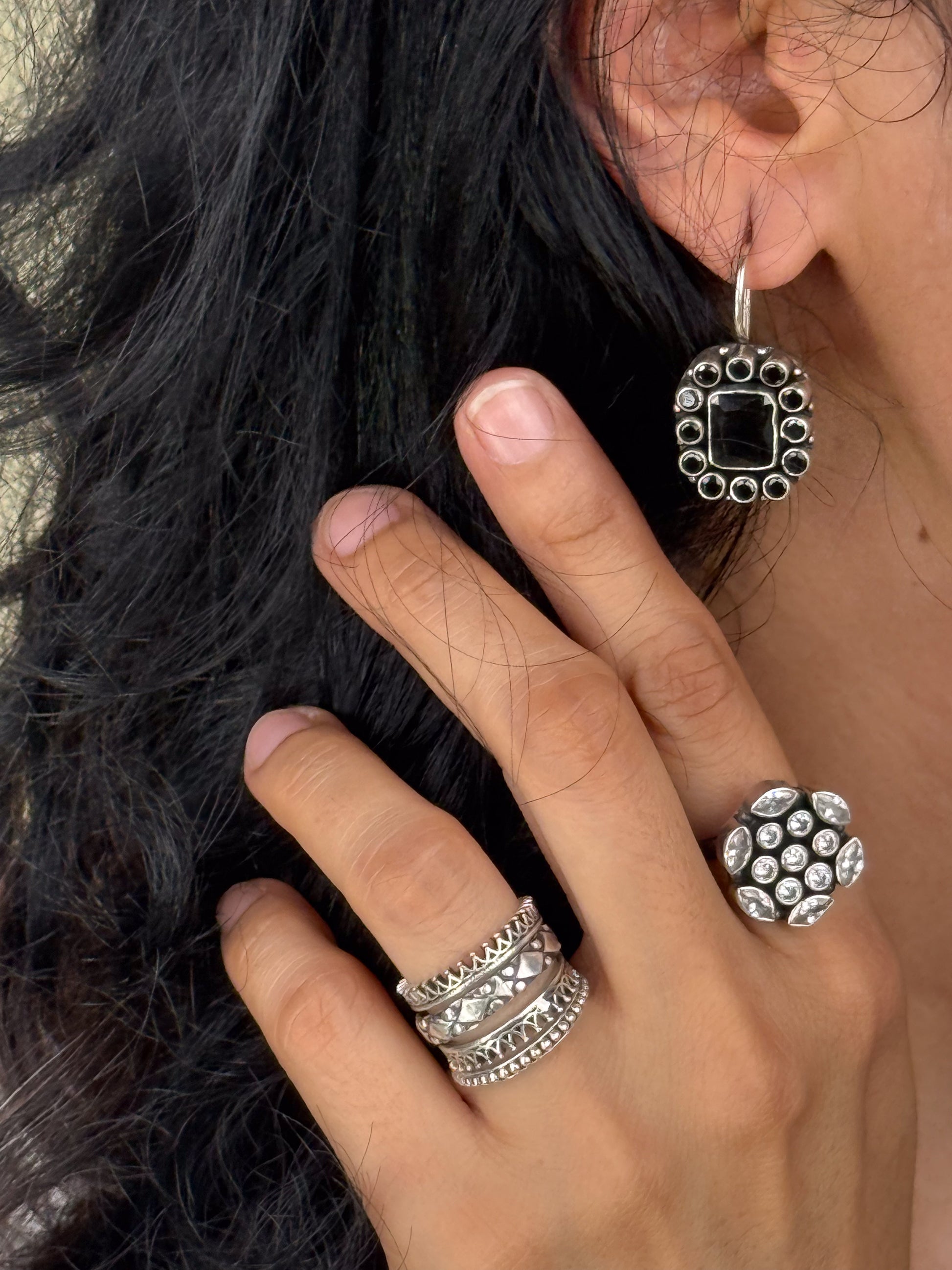 Detail - Pure 92.5 silver earrings.