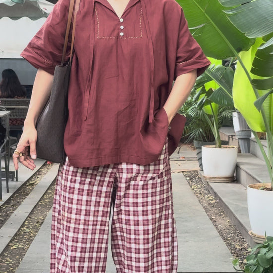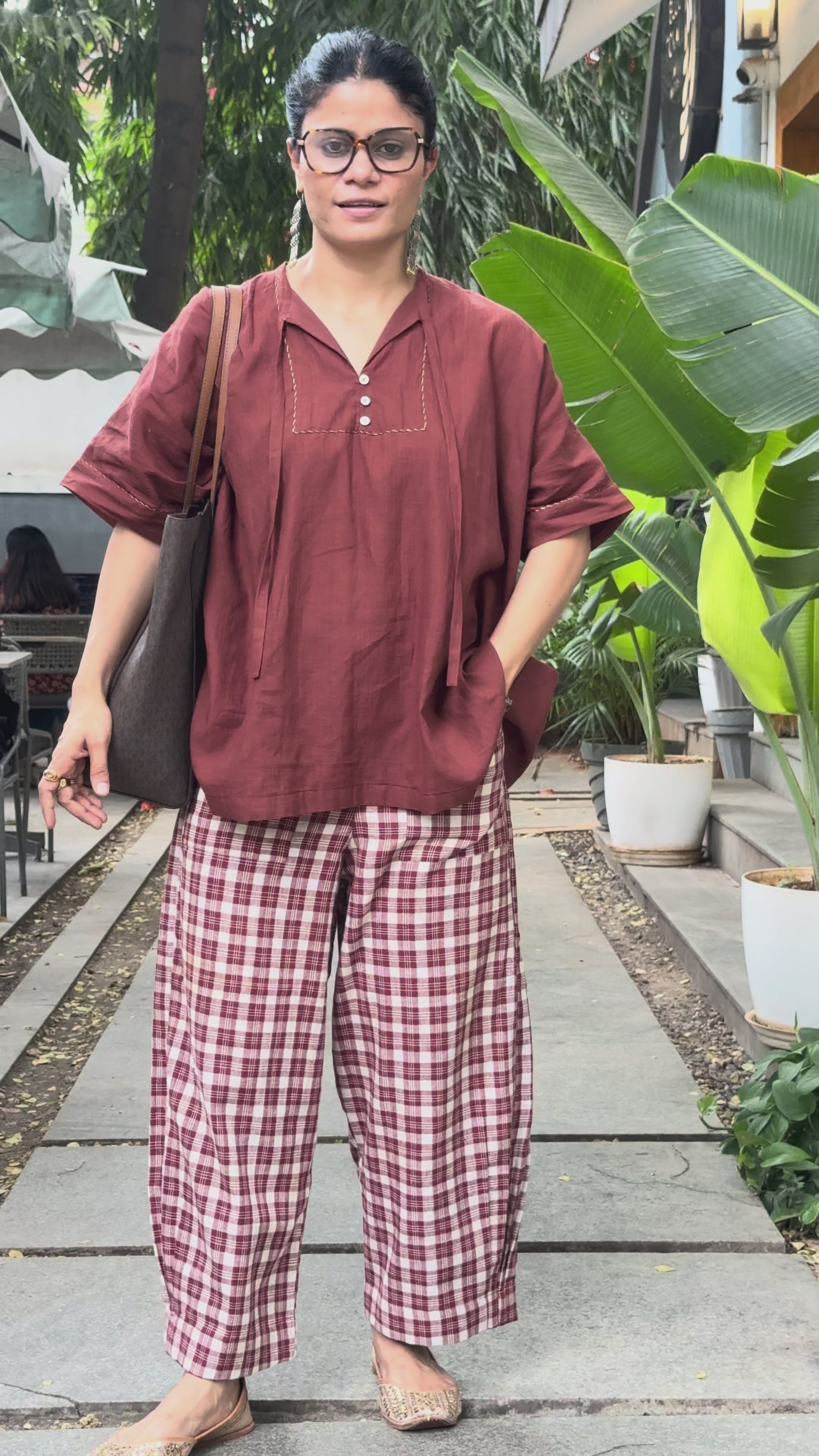 About the Top - This Cotton Top is designed for comfort and style. Made from soft, breathable cotton, it keeps you cool and comfortable all day long. The top features a cropped fit that pairs perfectly with high-waisted jeans, checked cotton contrast pant for relaxed and trendy looks