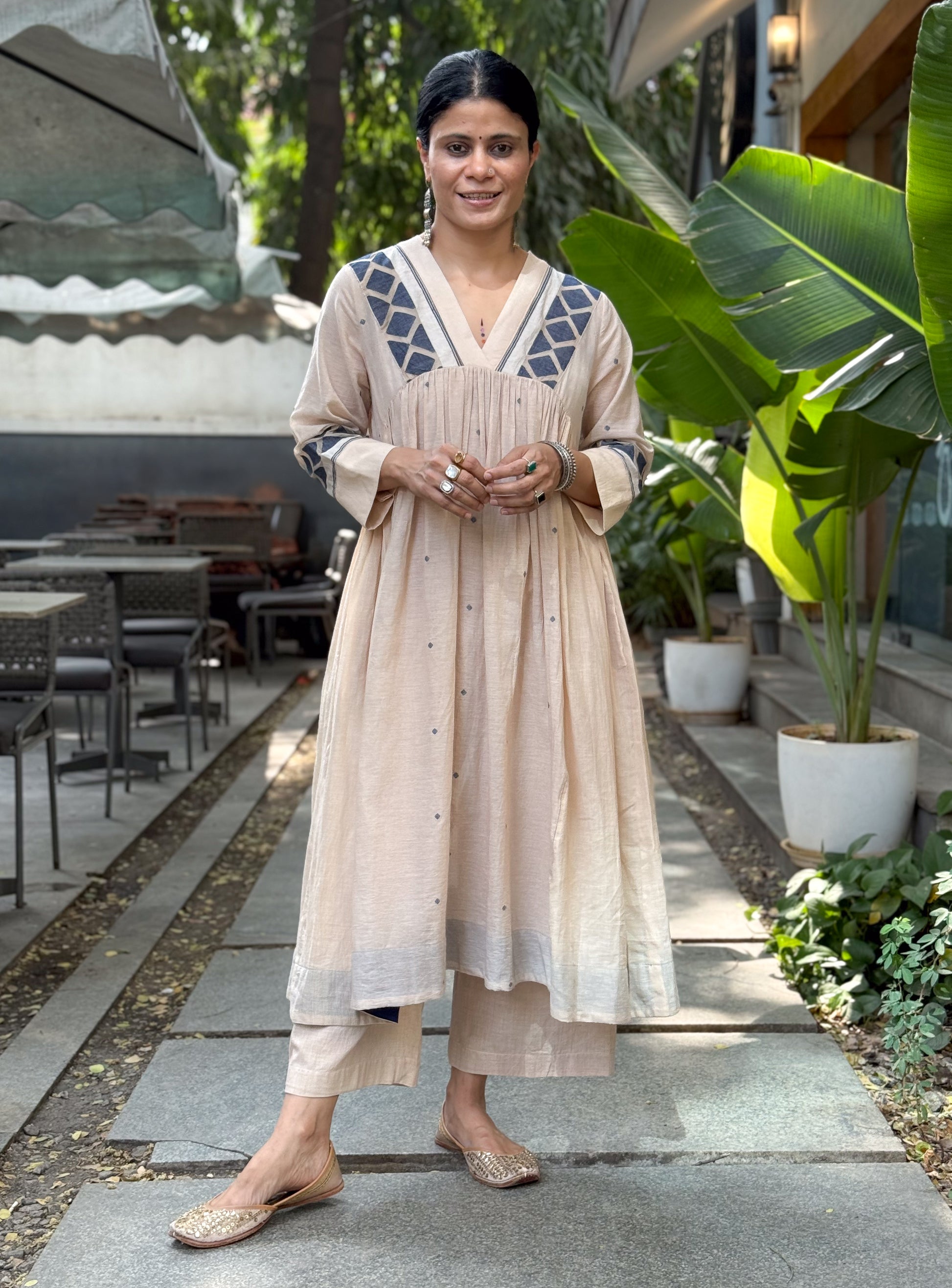 About the kurta - This Jamdani kurta is woven on traditional handlooms by skilled artisans, featuring delicate Jamdani motifs that highlight the charm of handcrafted textiles. The classic Jamdani aesthetic, making it perfect for intimate gatherings, or everyday elegance.