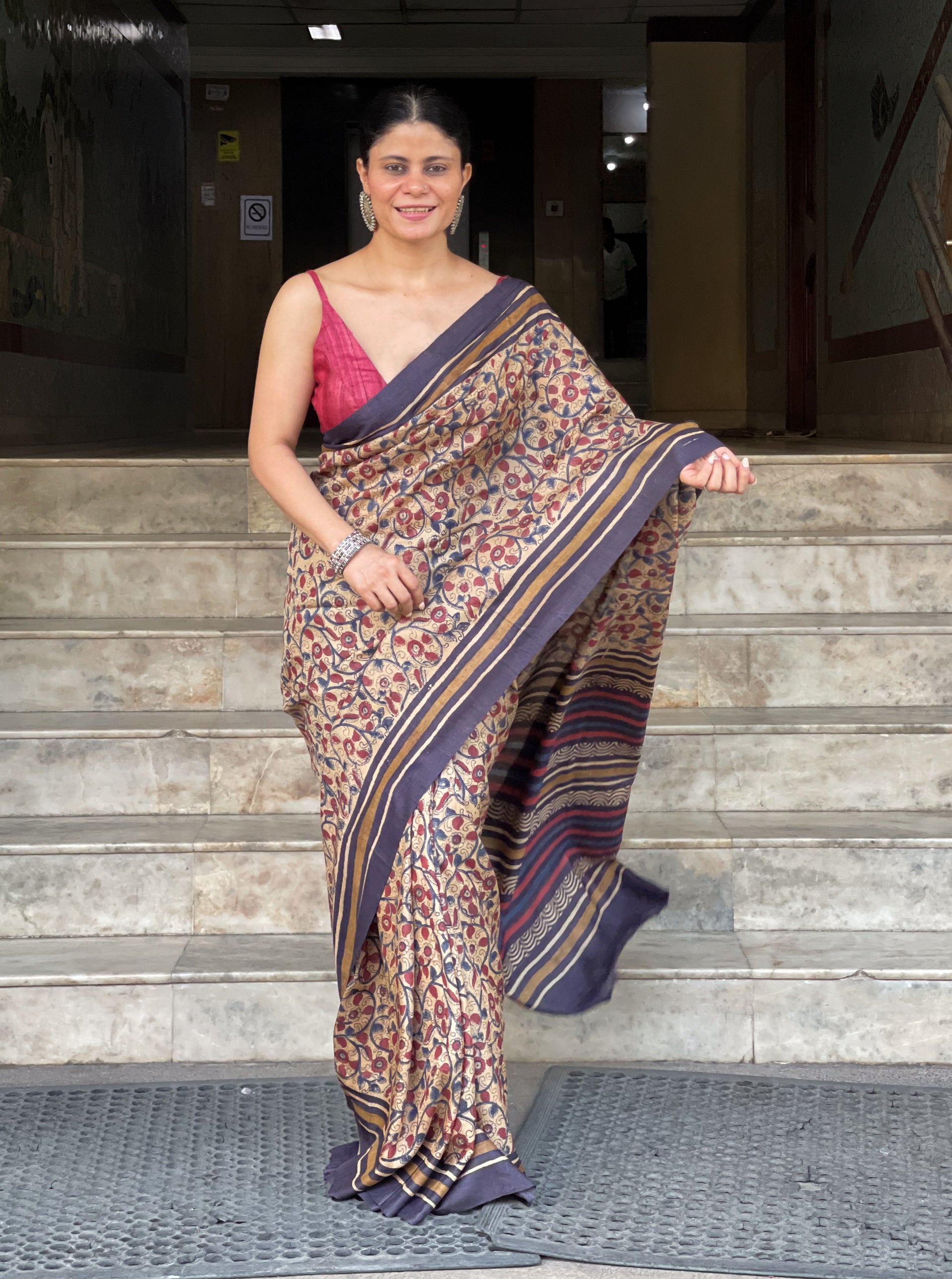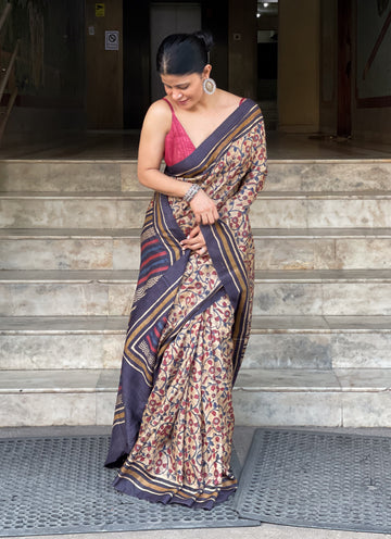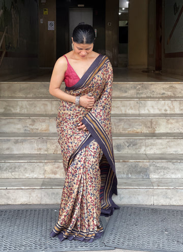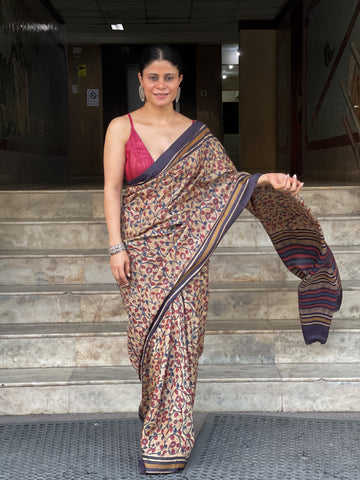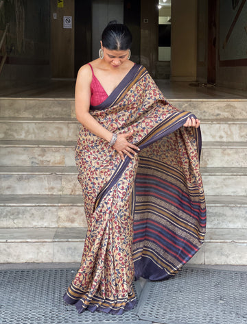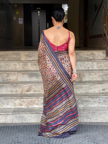 : Tussar SilkIt is a collection of handblock print natural dyed