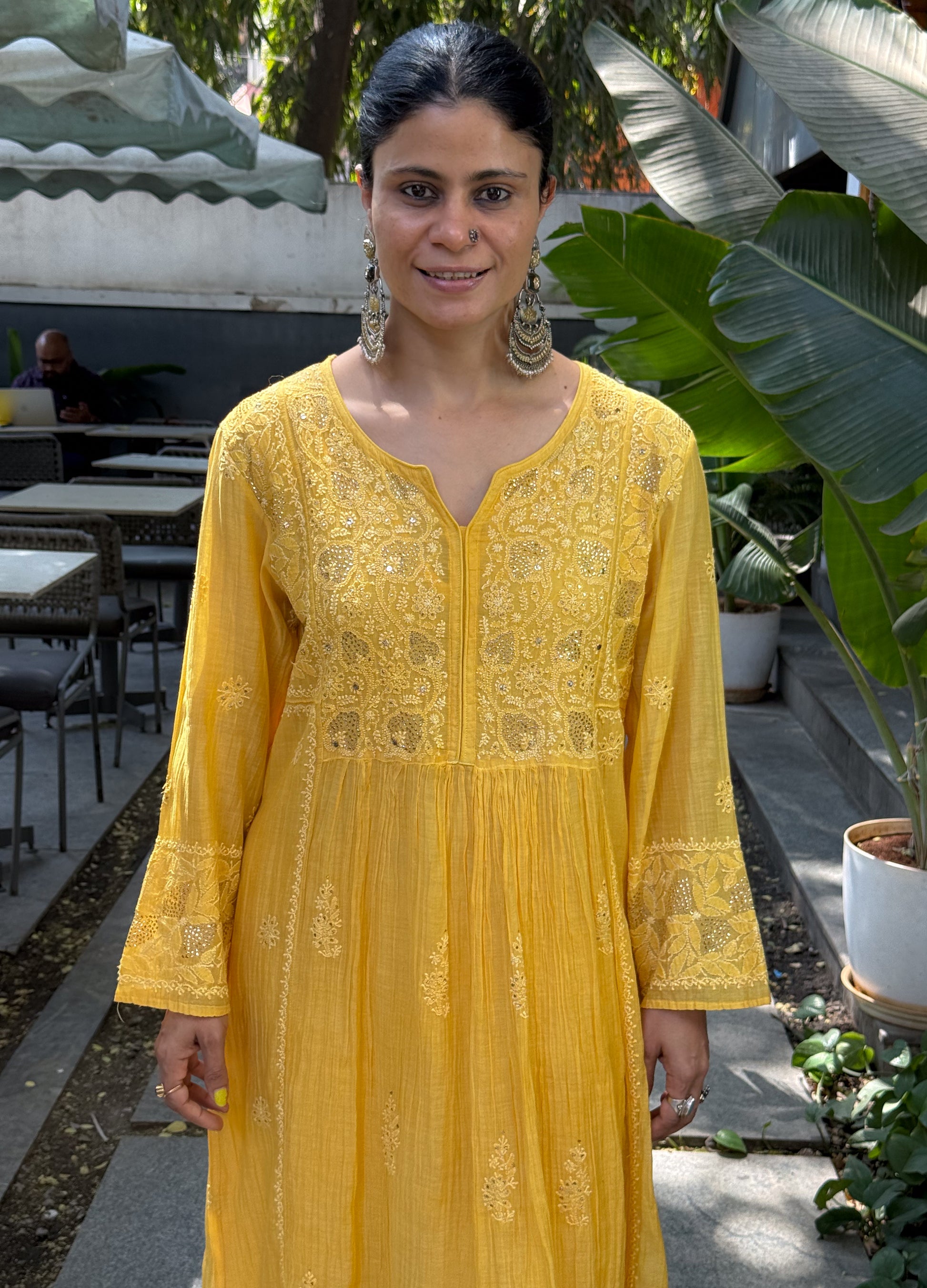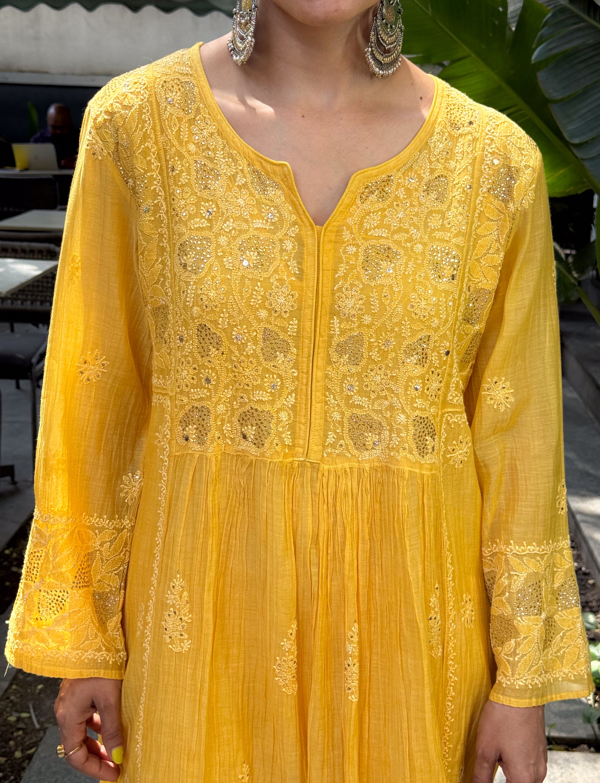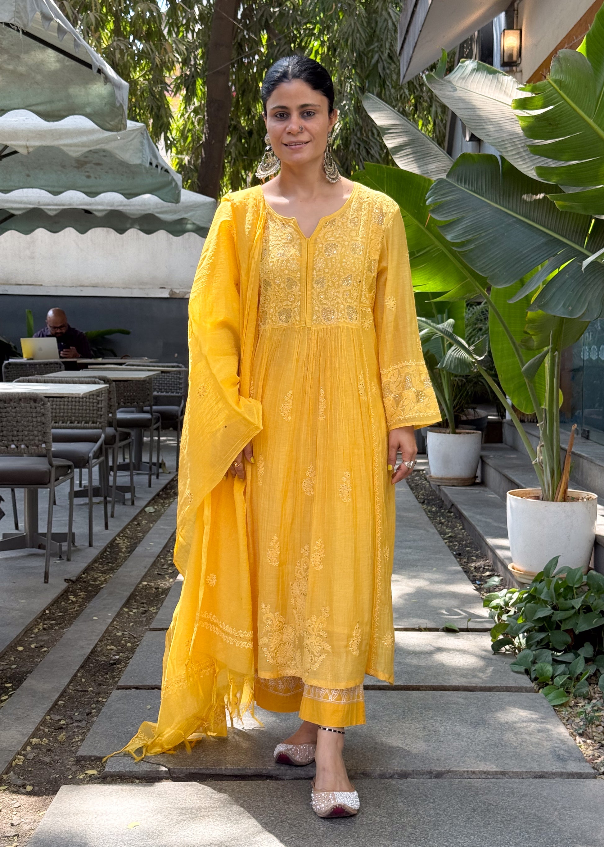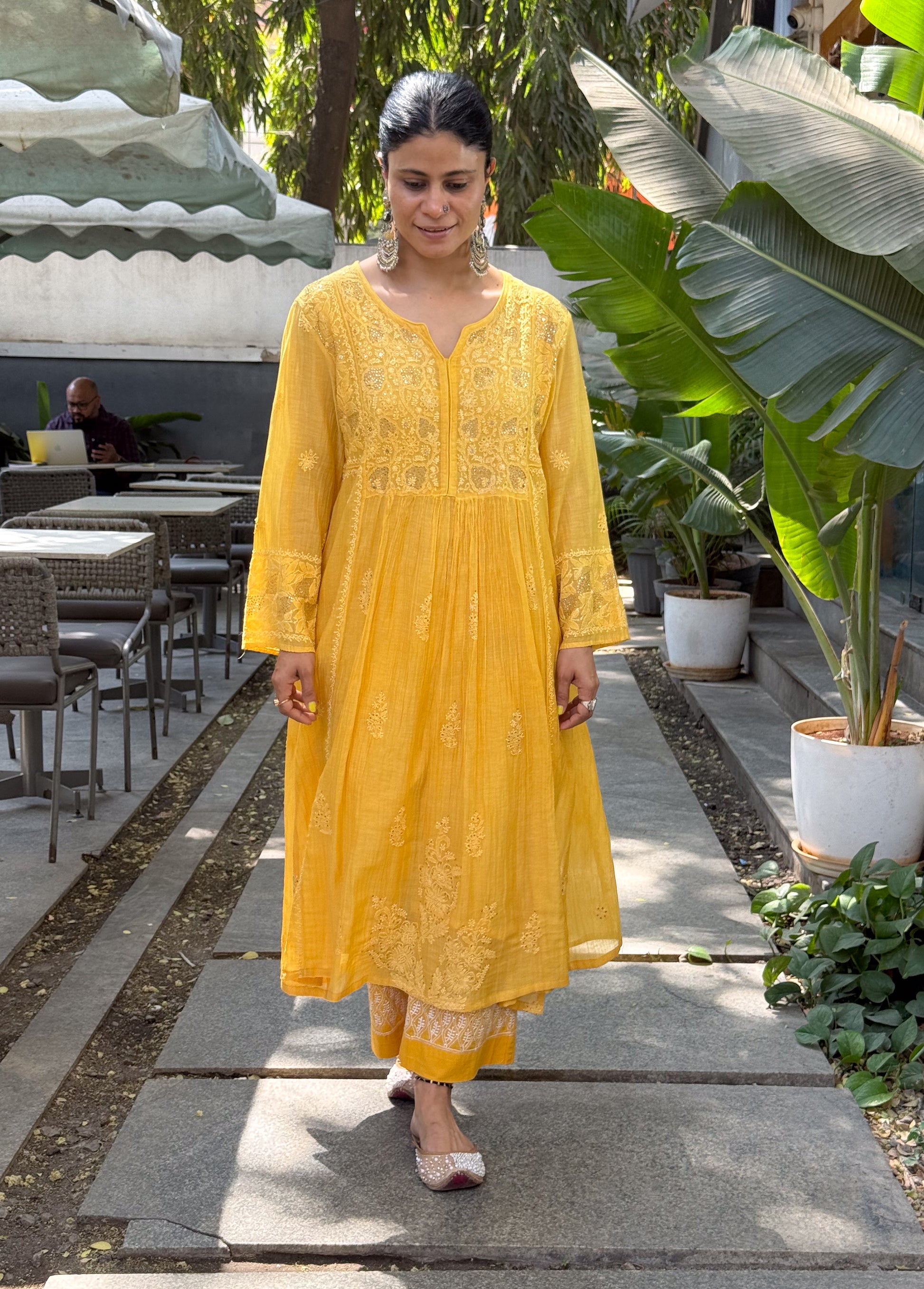 About the Kurta- Handembroidered Chikankari chanderi muslin kurta and dupatta