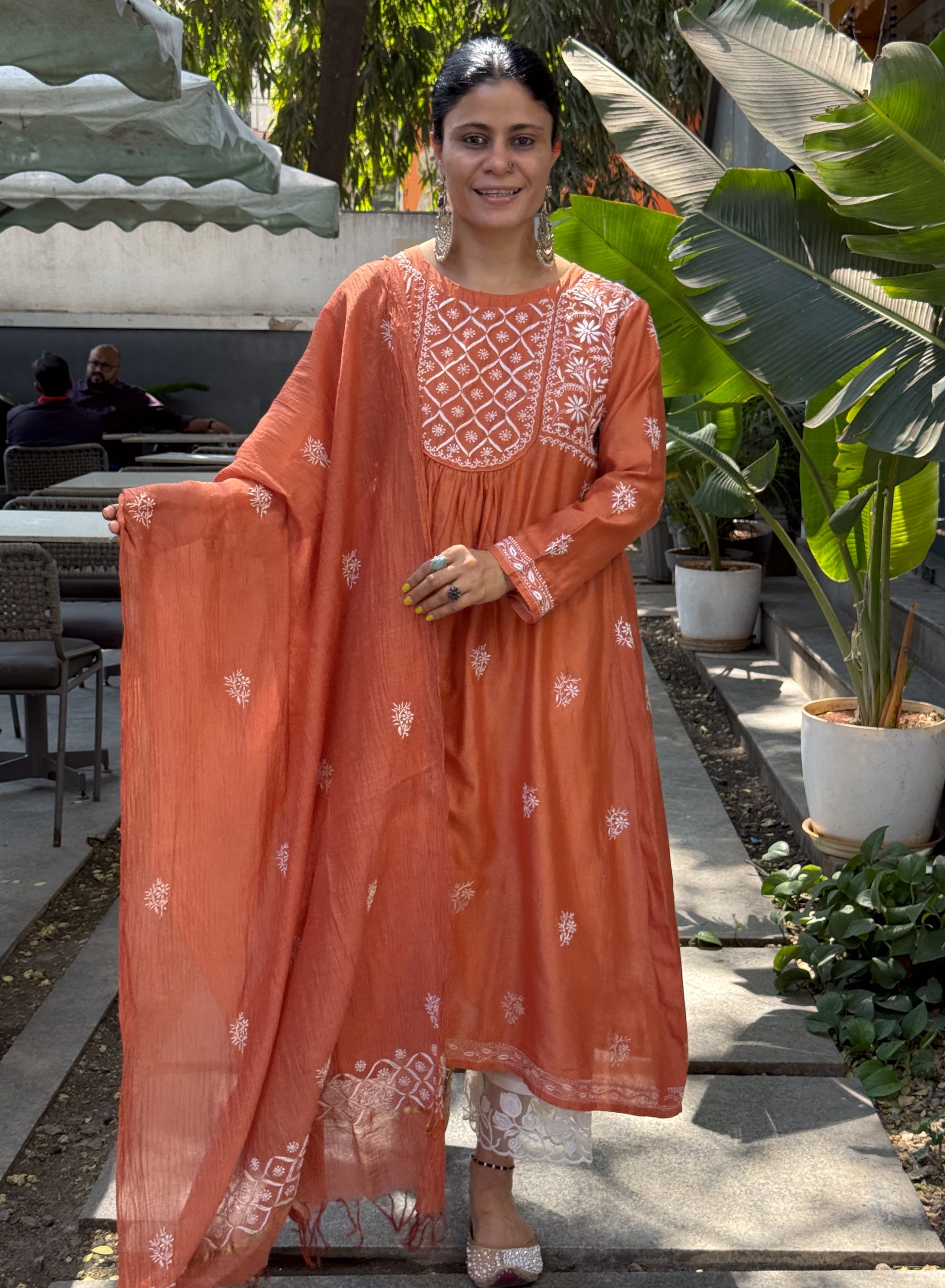 About the Kurta- Handembroidered Chikankari chanderi Silk kurta and dupatta
