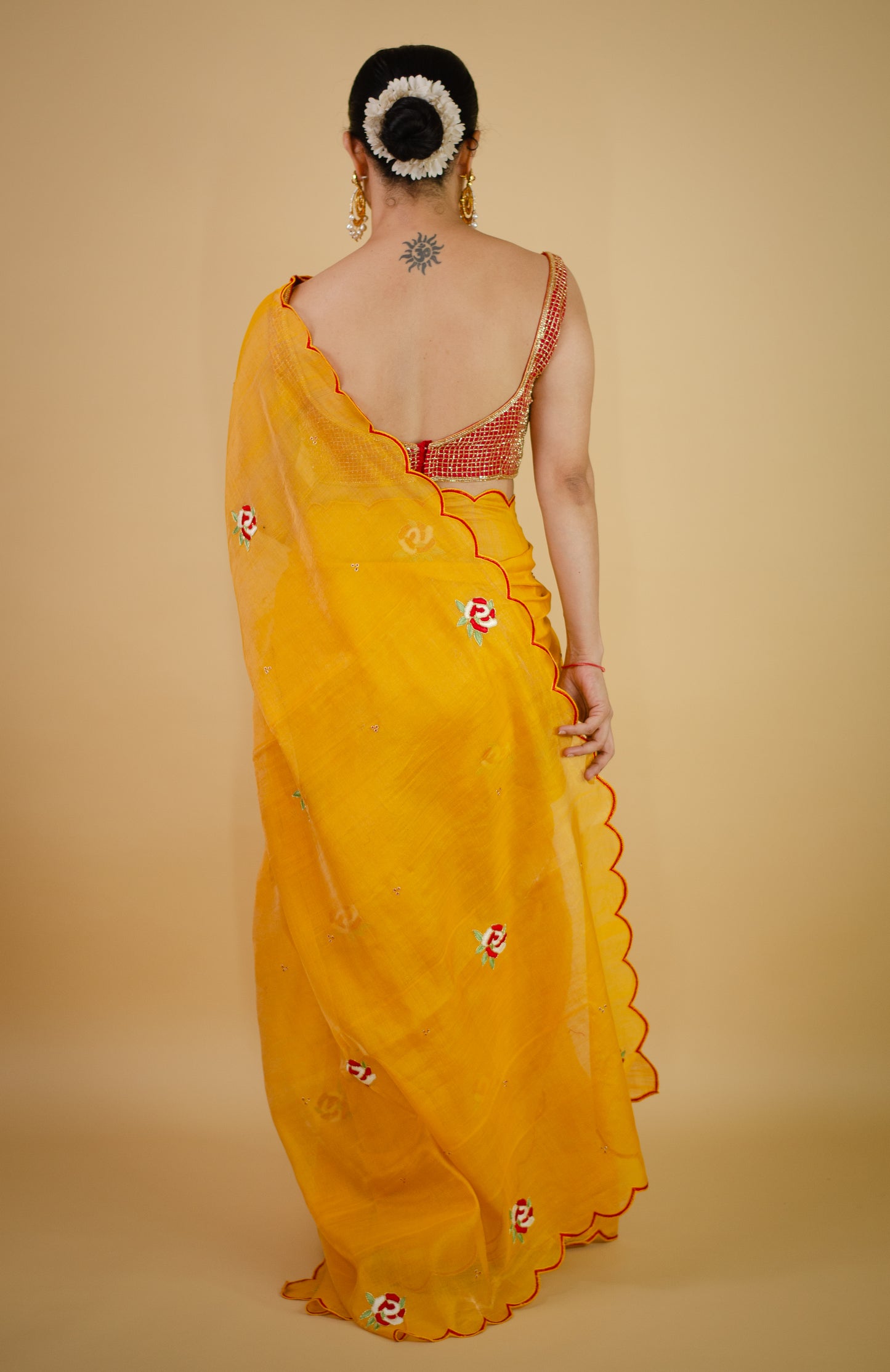 About the Saree - Sequence & Resham thread Hand embroidered tissue silk saree.