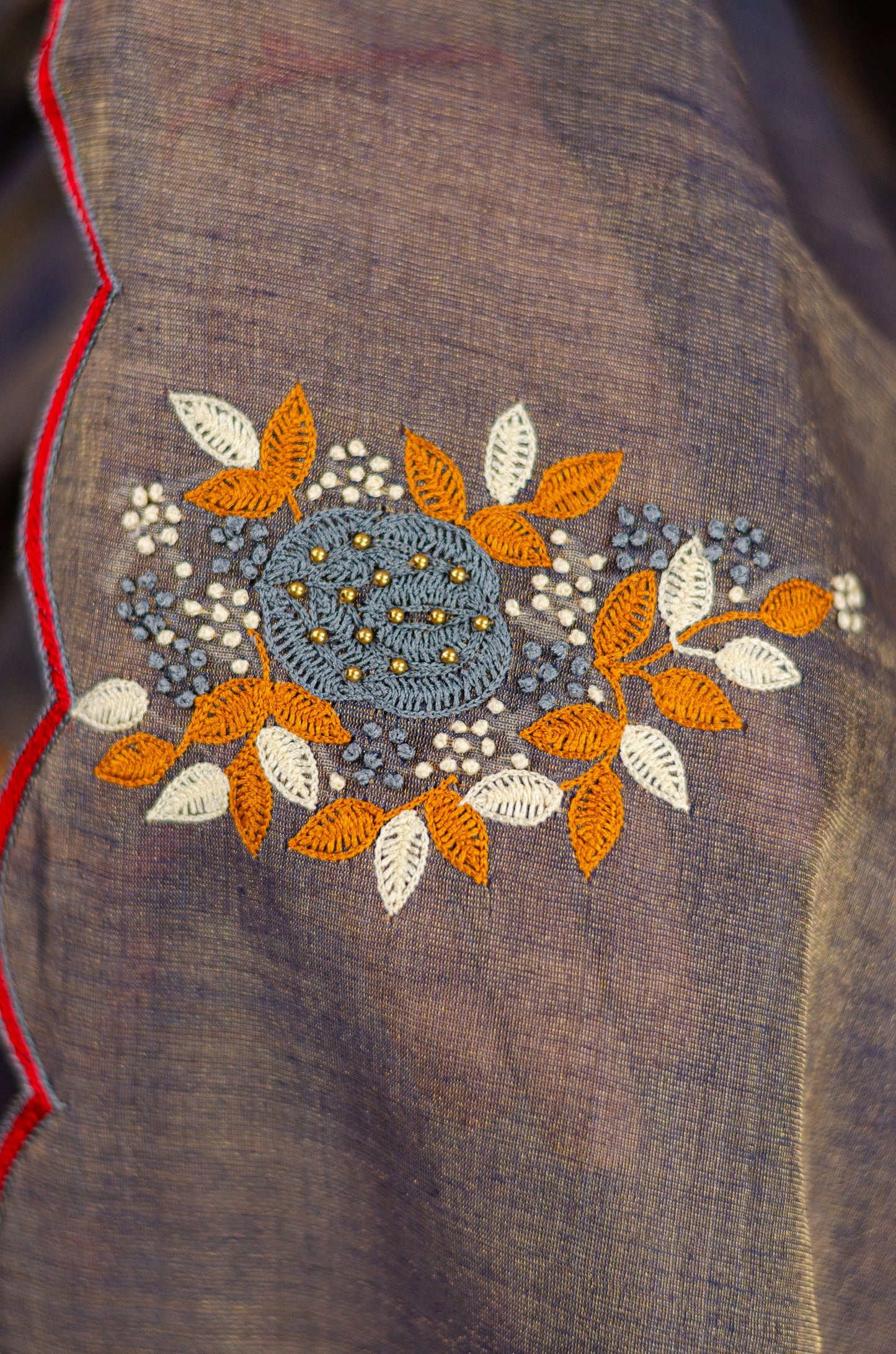 About the Saree - Sequence & Resham thread Hand embroidered tissue silk saree.